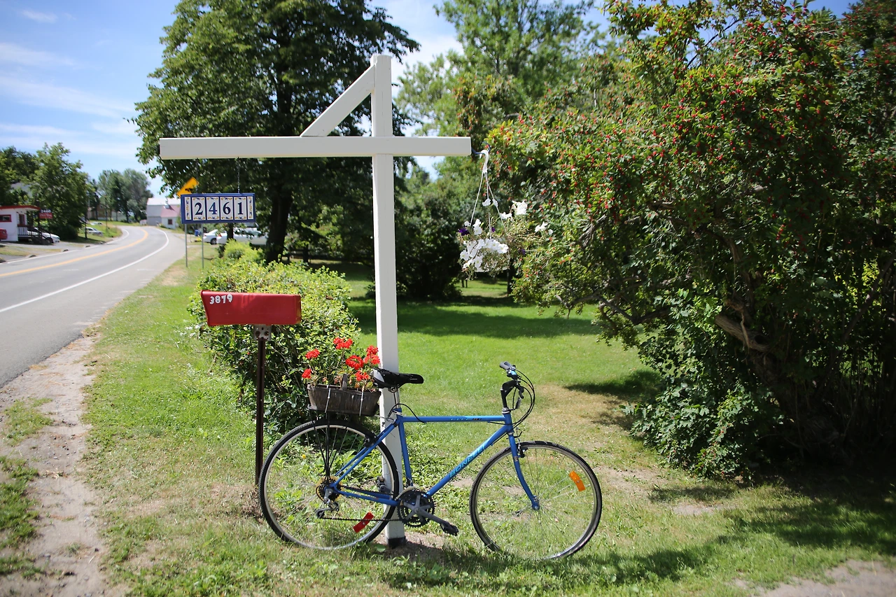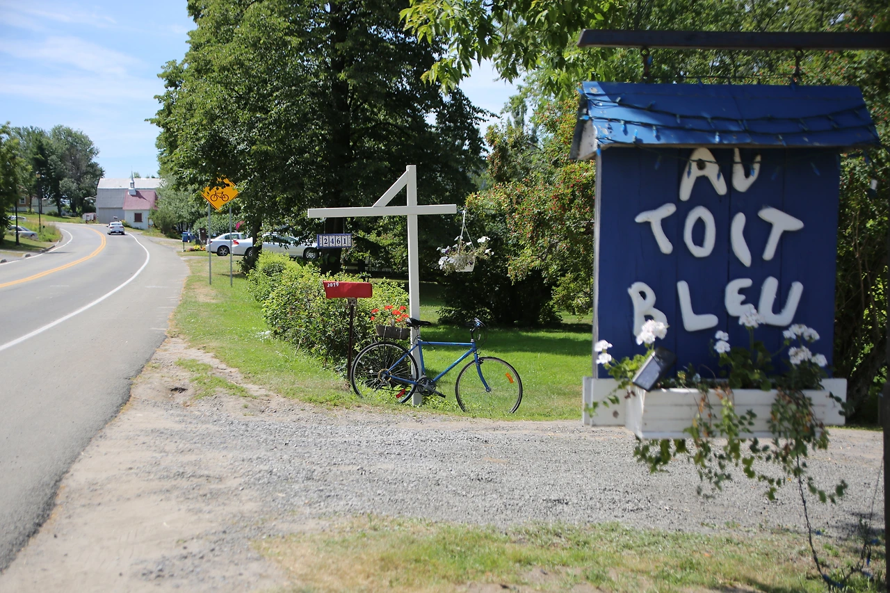 프랑스의 영향으로 노랑, 빨강, 파랑 등 원색 계열의 지붕이나 건물이 파란 하늘과 어울려 산뜻하고 아름다웠어요. 조용한 휴양지에서 한껏 사치를 누리는 기분입니다. 관광객들로 북적되는 퀘벡 구 시가지를 벗어나 작은 프랑스의 멋을 여유롭게 누릴 수 있는 시간이었지요. 섬을 오롯이 한 바퀴 돌아 퀘벡으로 가는 다리 쪽에 도착했습니다. 아침에 생각했던 대로 처음 갔던 푸른 집으로 다시 향합니다. 아침에 봤던 아저씨 혼자 계십니다.