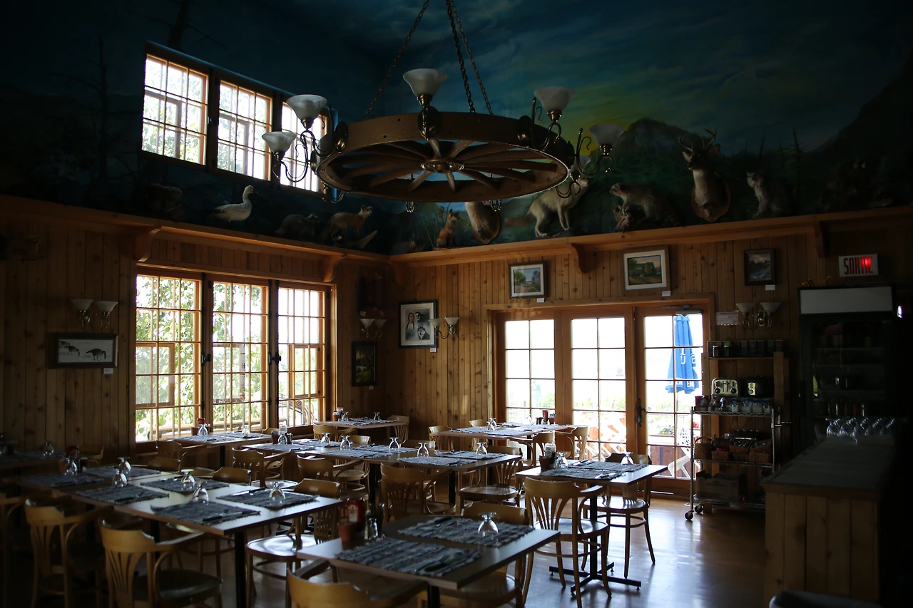 레스토랑의 실내 벽에는 수십 마리의 동물 박제가 놓여 있고 한쪽에는 테라스로 나가는 문이 있습니다. 햇빛이 너무 강해 안쪽에 앉았지요. 주문을 받는 레게 머리 청년에게 헤어가 아주 멋지다고 말하니 정말이냐며 좋아합니다. 4년을 길렀다는데 몸놀림이나 말하는 게 철부지 같더군요. 손님들에게 물컵을 가져가다 깨트리질 않나, 카펫에 발이 걸려 넘어질 뻔하질 않나, 그래도 시종 웃음 코드를 달고 다니는 청년의 이름은 아드리앙이예요. 다소 기름을 과하게 머금은 프렌치프라이를 푸짐하게 곁들인 버거와 커피는 그야말로 꿀맛입니다. 캐나다는 수돗물을 그대로 식수로 사용하는 터라 음식점에서 가면 일단 물을 한 병 기본으로 가져다줍니다. 리필한 커피까지 마시고 배가 든든하니 또 기분이 좋아집니다. 혹시 섬의 지도가 있느냐고 물으니 사장님께 물어보겠다고 하고는 서빙에 바빠 잊은 듯해 보였어요. 화장실에 갔다 오다 보니 리셉션 테이블에서 지도를 발견해서 한 장 가져닷 보고 있었지요. 청년은 자기보다 내가 낫다고 하면서 어떻게 찾았냐고 물어봅니다. 아드리앙은 자기가 사진을 찍어주겠다고 자청했습니다. 초점을 맞출 것도 없이 그저 꾹꾹 누르면서 그냥 혼자 신난 표정입니다. 계산을 하고 나오는데 주인 남자가 내 카메라를 보고 Mark3 nice라고 말합니다. 그러더니 Mark4를 보여주면서 자기 것이 베스트라고 어린아이처럼 으스댑니다.