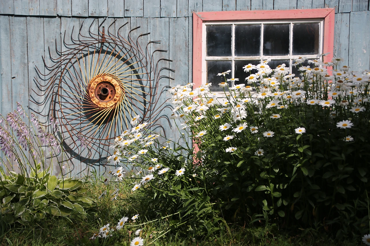 나무로 만들어진 오래된 농가와 창고입니다. 푸른빛을 띠고 있지만 회색을 물고 있는 청색 바탕에 핑크도 빨강도 아닌 붉은색 또한 회색을 품었는데 지붕과 창문의 테두리에 포인트로 칠해졌습니다. 무심한 듯, 화려하지 않은 그 컬러 속엔 수많은 비바람과 세월의 더께가 묻어 있어 오히려 더 시크하게 보였습니다. 얼마나 아름다운지 심장이 쿵쾅거렸지요. 소량의 딸기와 블루베리가 가판대위에 놓여있고 앞의 집보다 더 큰 창고 앞에는 방금 캔듯한 미니 당근을 손질하는 아저씨가 보였습니다. 인사라도 하고 싶었는데 당근 잎을 정리하는데 집중하시는지 아니면 나 같은 여행자들이 자주 찾아오는 것에 무신경해진 것인지 고개도 들지 않았습니다. 그에게 방해가 되지 않도록 조용한 발걸음으로 창고 주변을 돌며 사진을 찍었어요. 방 한 칸 빌려 살면 좋겠다 싶습니다. 붉은 칠이 드문드문 벗겨진 나무 바퀴가 나무 벽에 세워져 있습니다. 그 옆엔 하얀 마가렛들이 무더기로 피어있고 또 하나의 바퀴 앞에는 이름도 소소한 보랏빛 비비추들이 수줍게 피어있습니다. 한참을 쪼그리고 앉아 바라보았지요. 행복은 그런 사소함에서 다가옵니다. 그 아름다운 농가에서 딸기와 블루베리를 사고 싶었지만 그럴 수 없었습니다. 아침 10시도 안 된 시점이고 햇살이 무척 뜨거운 지라 하루 종일 차 안에 두면 금방 물러버릴 것 같았서예요. 대신 섬을 한 바퀴 돌고 난 후 돌아가는 길에 다시 들러 꼭 이곳에서 사리라 마음먹었지요.