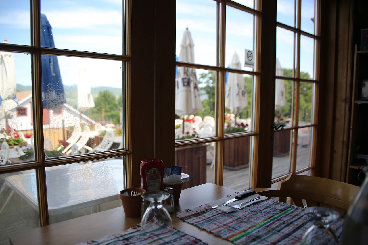 그 후로도 가다 서기는 반복되었습니다. 찾아가야 할 목적지가 있는 게 아니요, 그저 한적함을 느끼러 왔으니까요. 시간이 흐를수록 도로를 오가는 자동차 숫자가 점점 늘어났습니다. 헤드기어를 쓰고 하이킹을 즐기는 젊은이들과 가죽점퍼를 입고 두건을 쓴 중년의 모터사이클족 또한 많아졌지요. 이른 아침에 숙소를 나선 터라 출출함을 느낄 무렵 샬레와 테라스가 있는 레스토랑을 겸한 곳을 지나게 되었습니다.