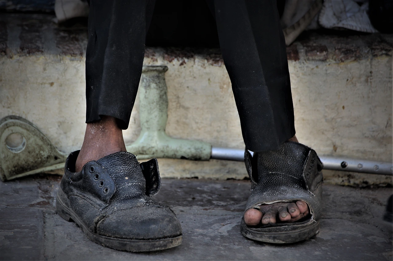 헤져서 잘랐는지, 일부러 잘랐는지, 그렇다면 누가 잘랐는지 모를 구두 한쪽,