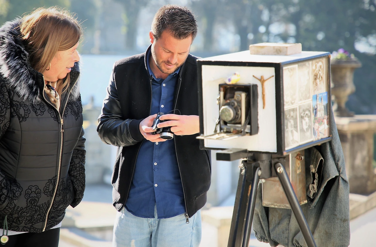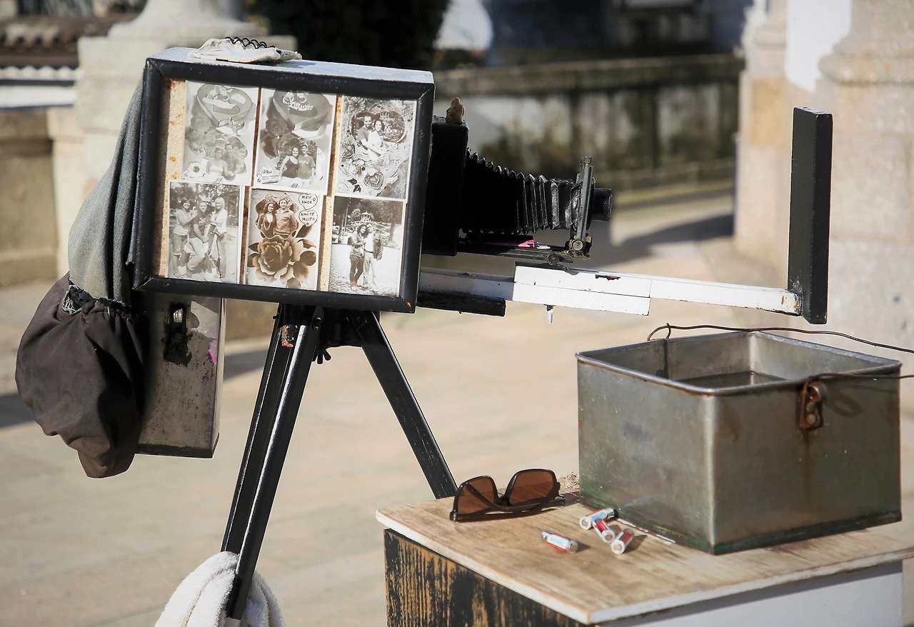 성당 앞에 영화에서나 볼법한 오래된 카메라가 놓여 있었습니다.