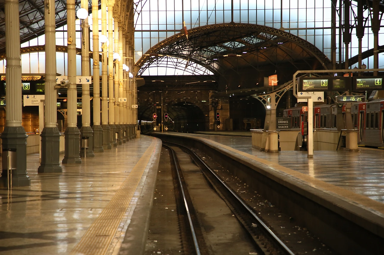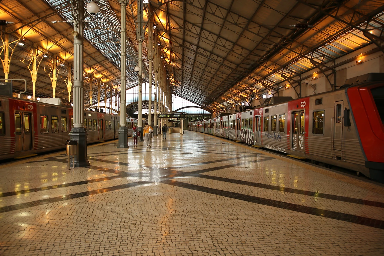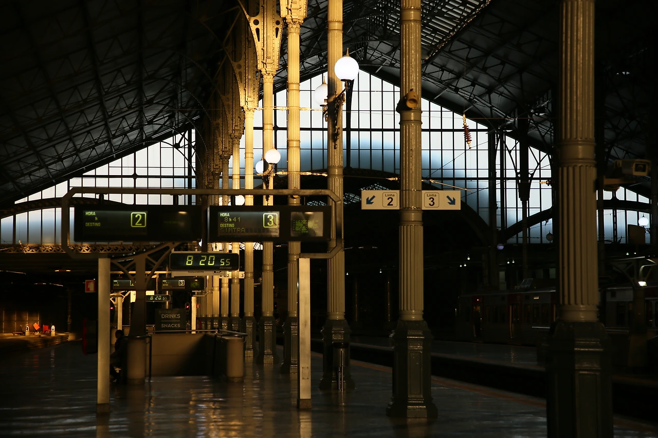 호시우 역의 플랫폼 바닥에 깔린 돌들이 반질반질 윤이 납니다.
