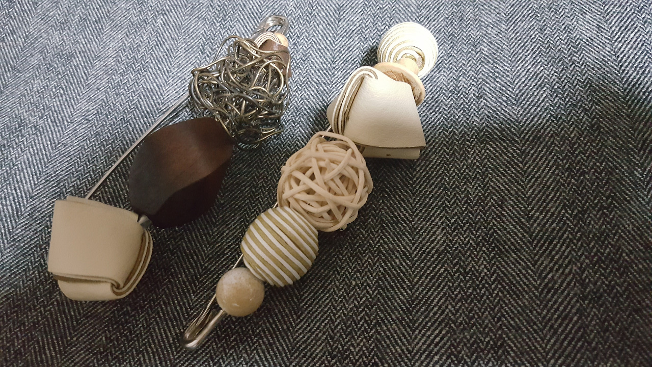 가죽과 철사를 엮어 만든 브로치를 샀습니다.
