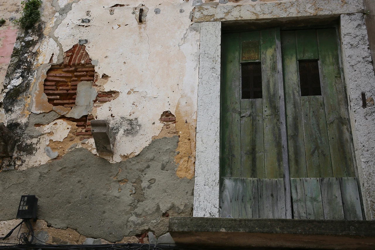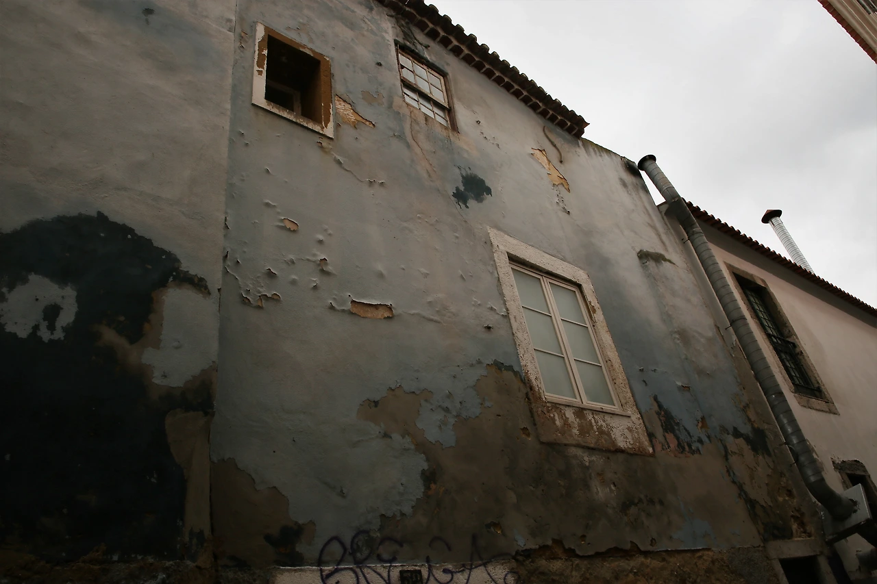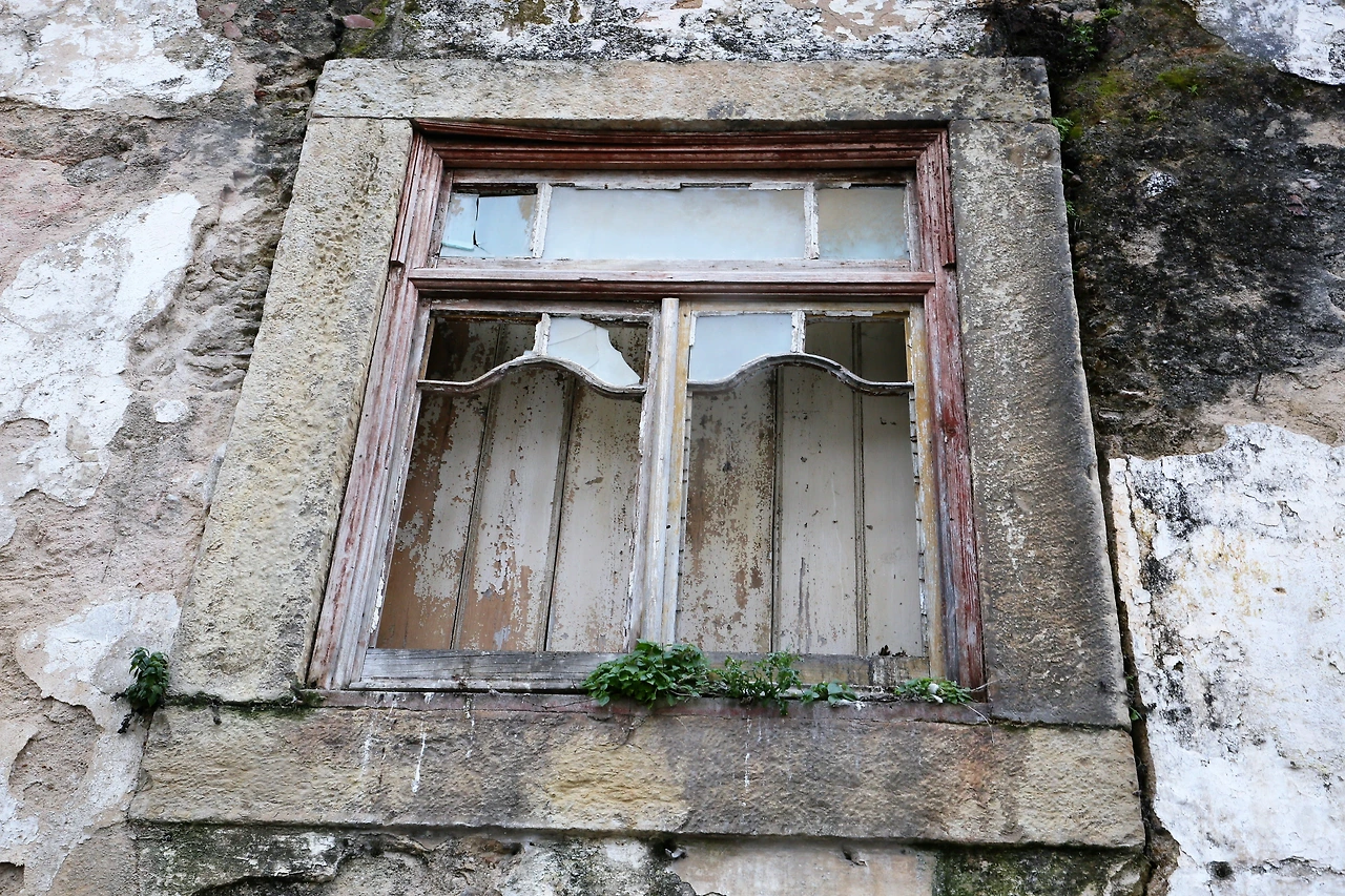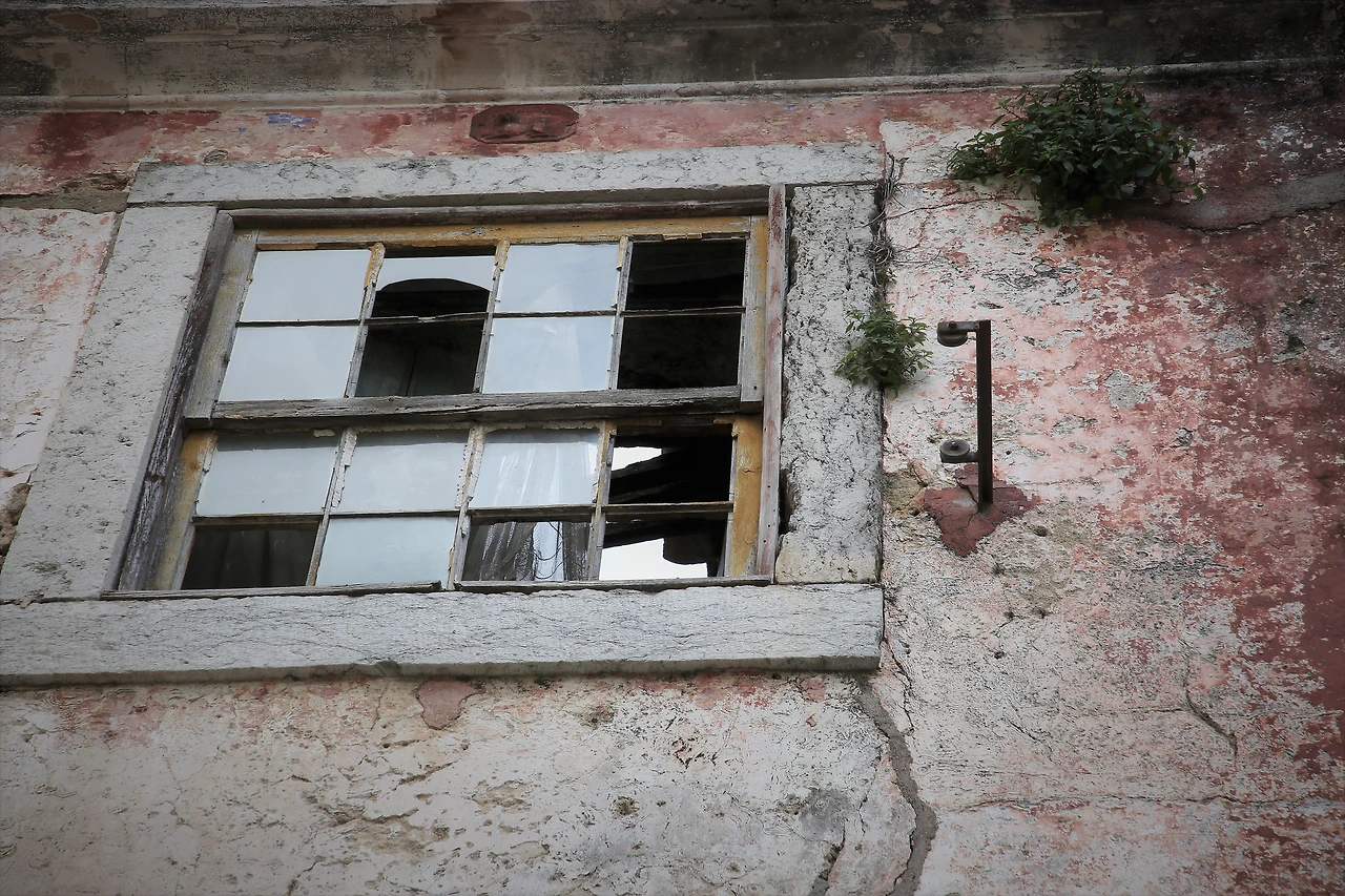 오래된 도시의 골목에는 뼈만 남아 있는 빈 집이 많습니다.