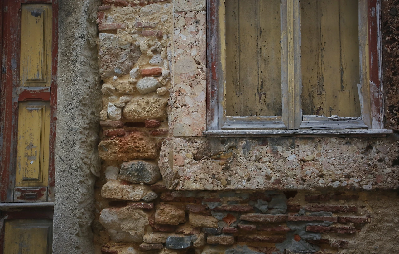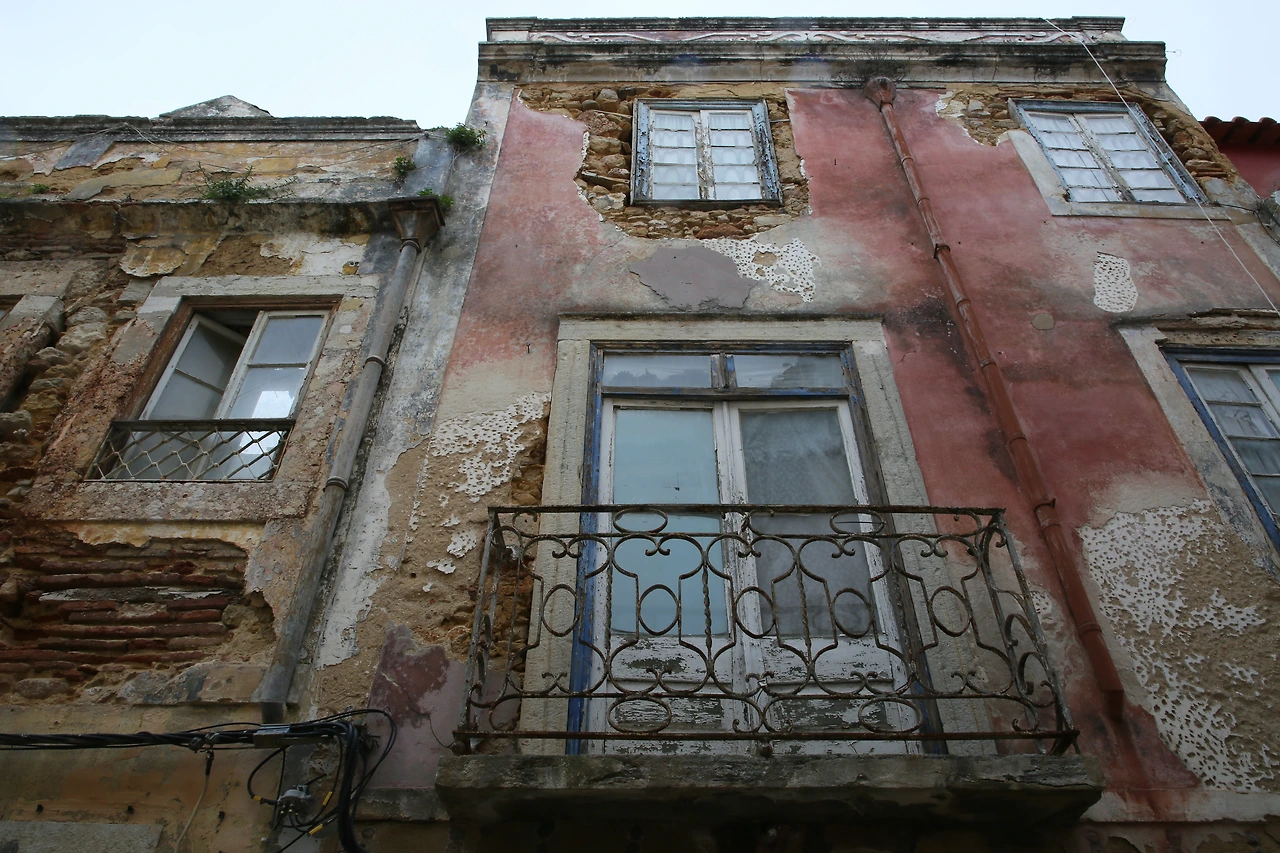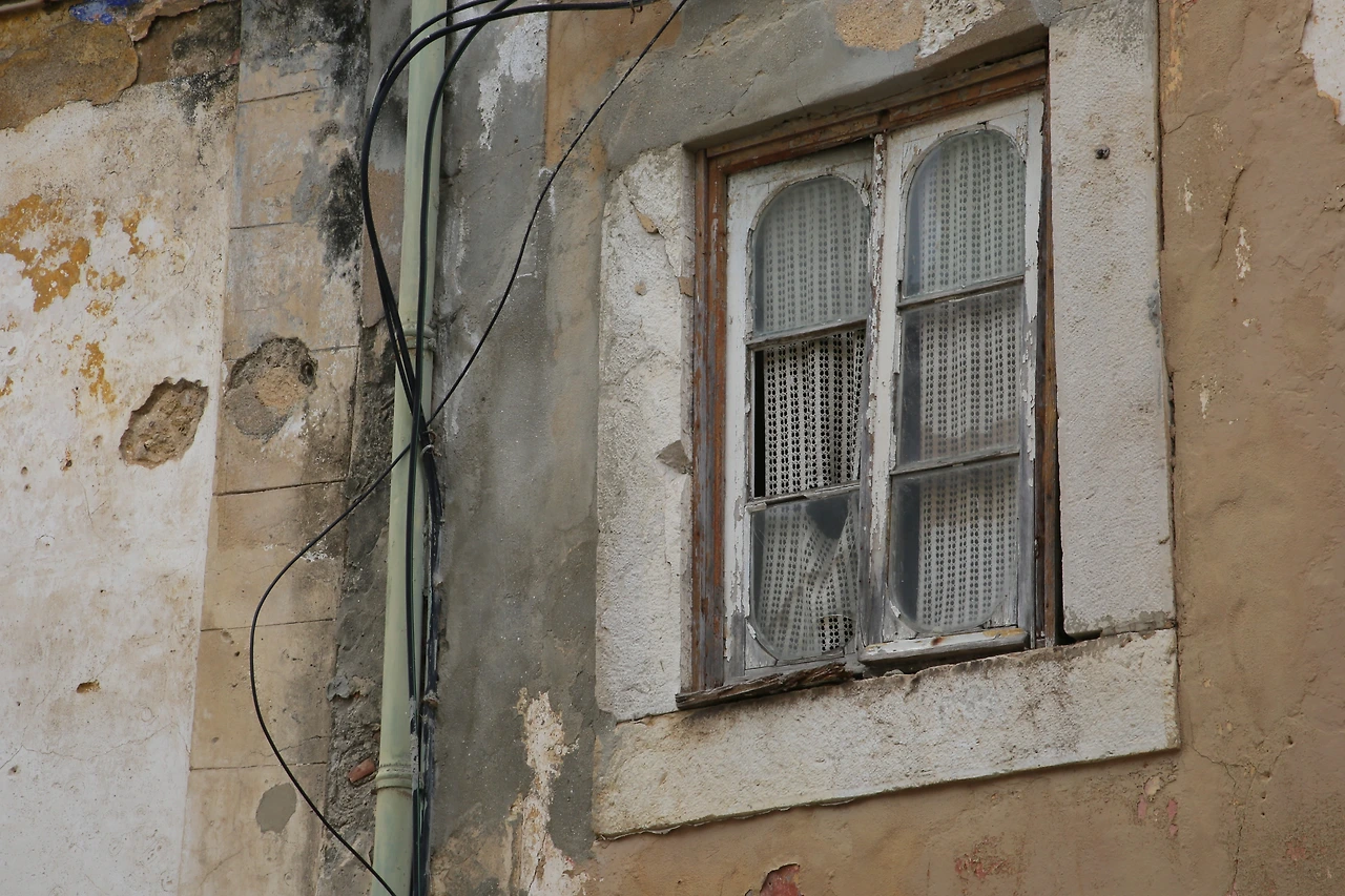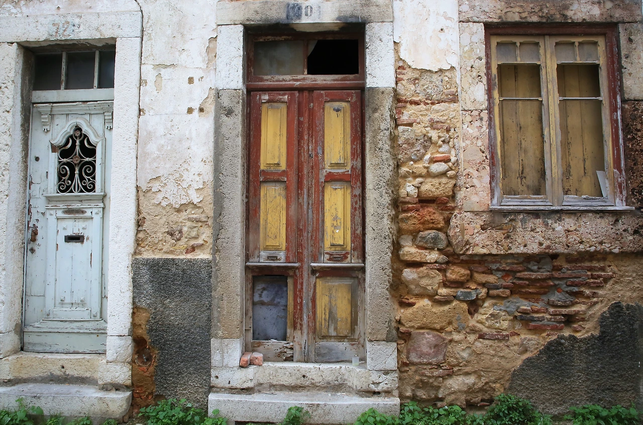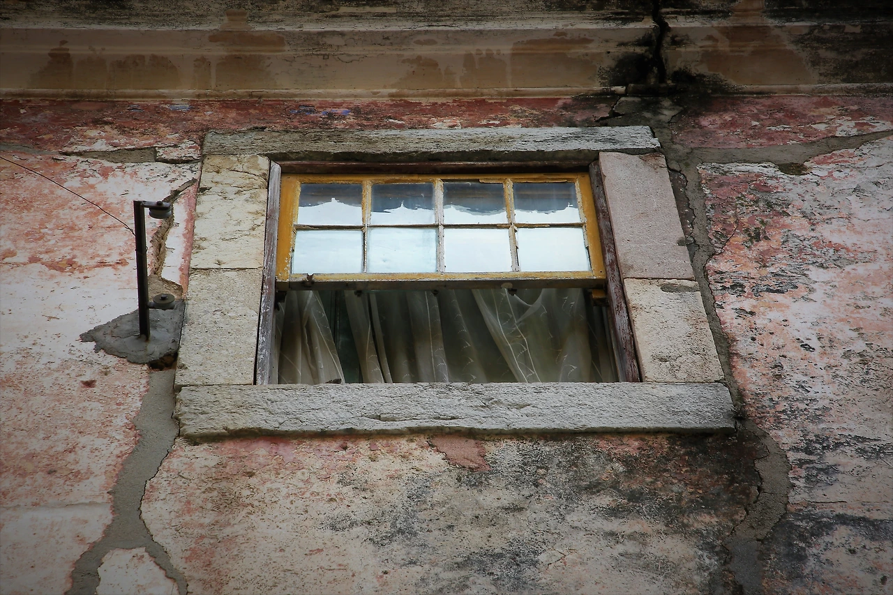 오래된 도시의 골목에는 뼈만 남아 있는 빈 집이 많습니다.