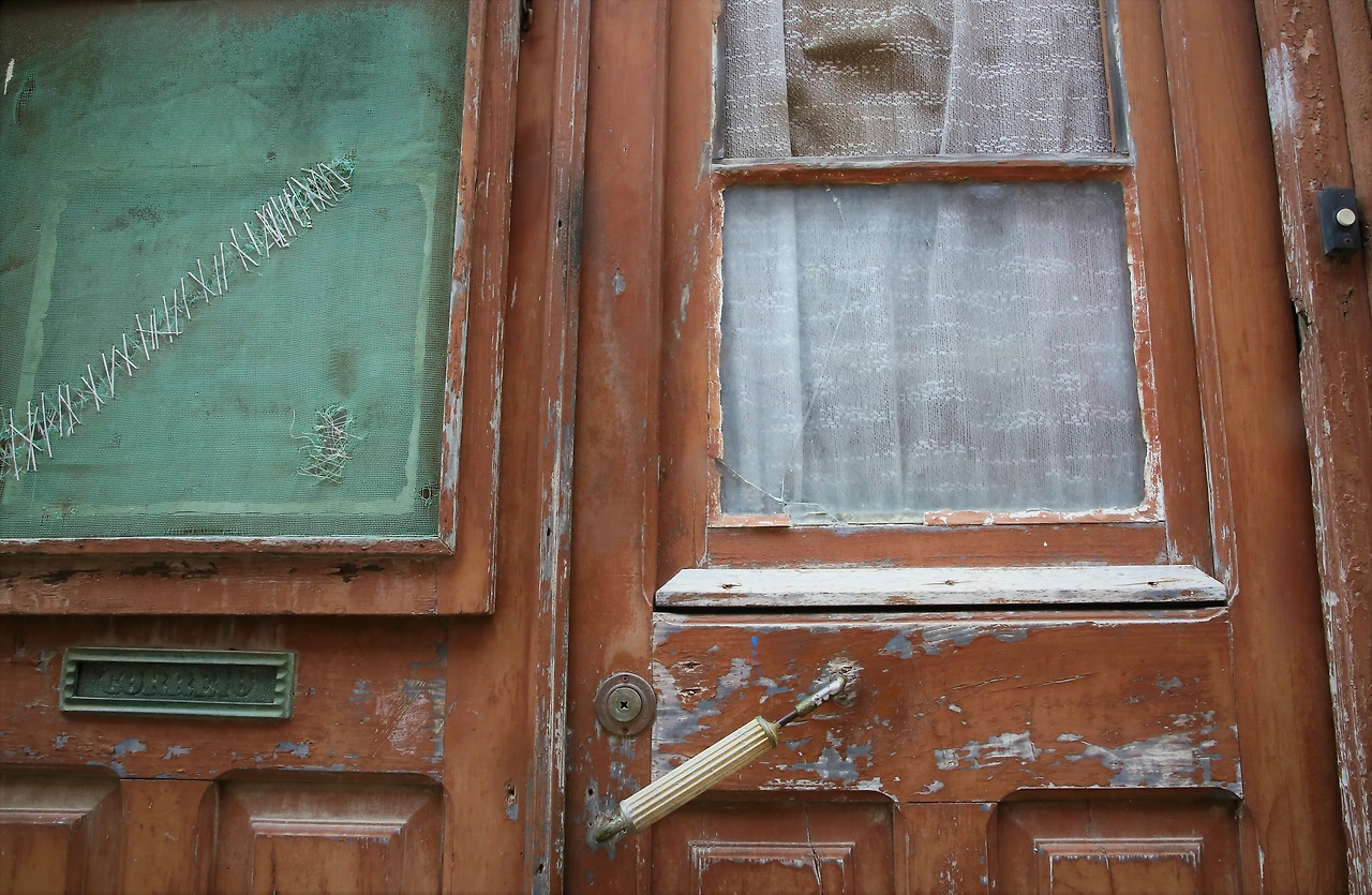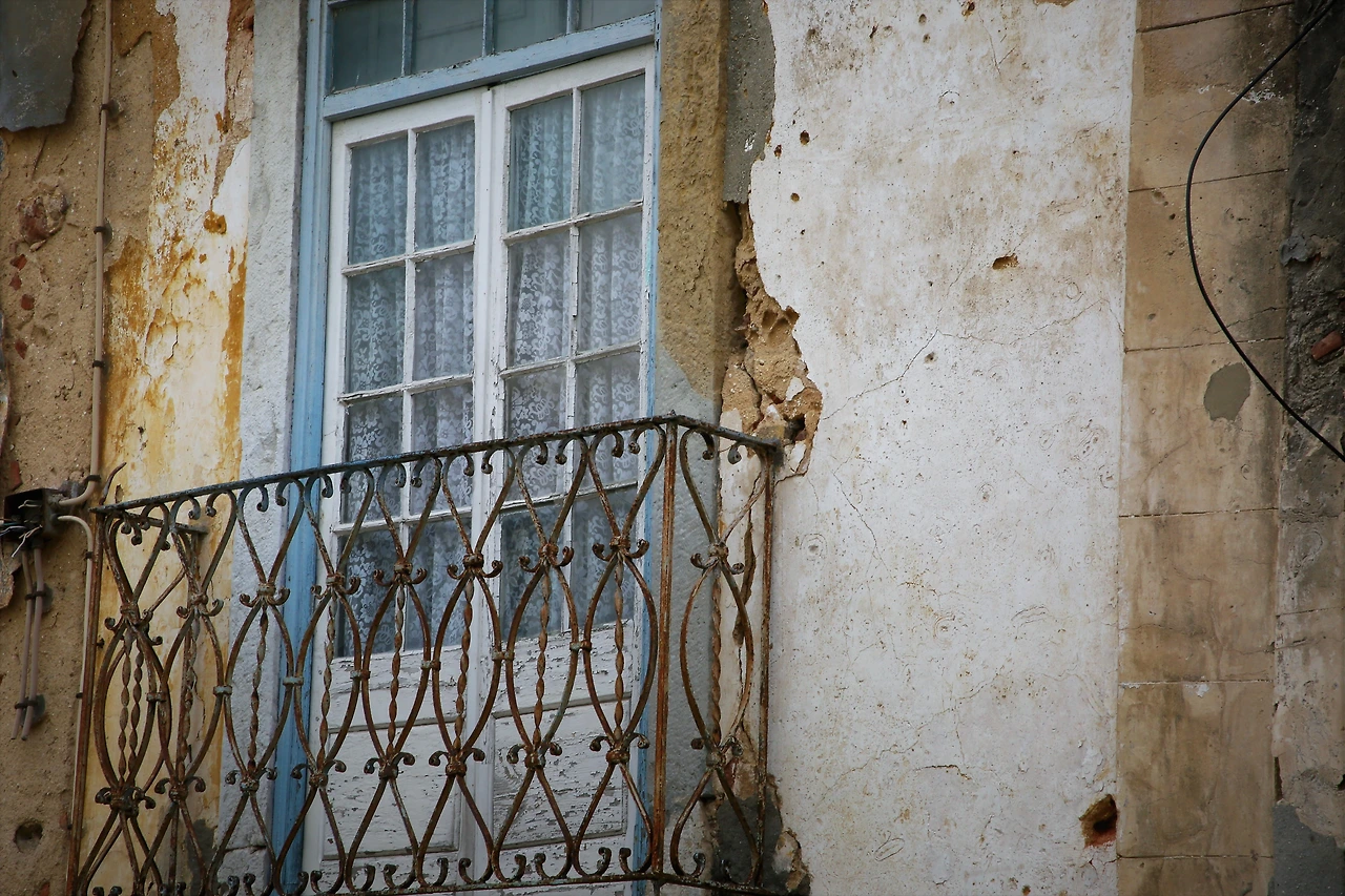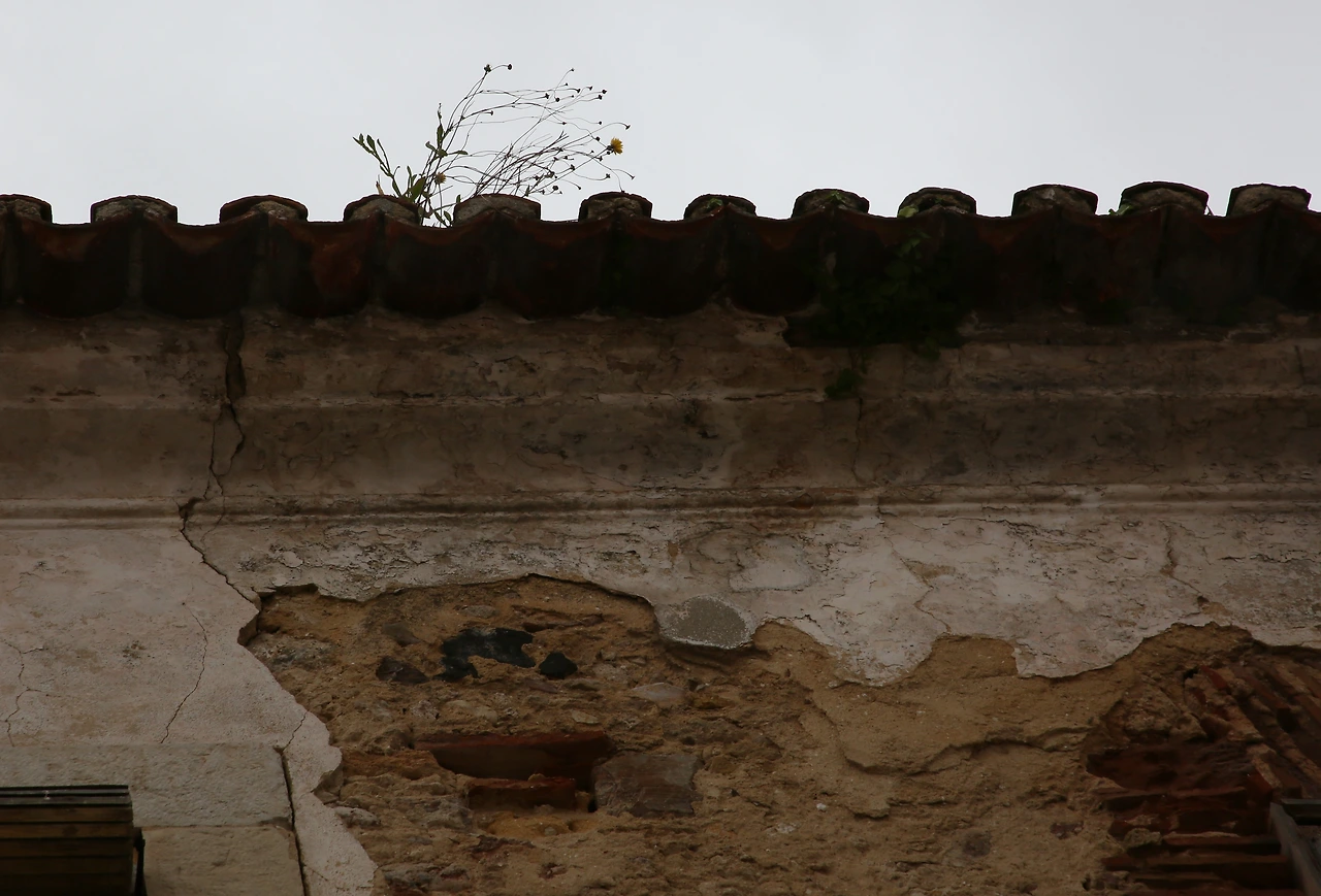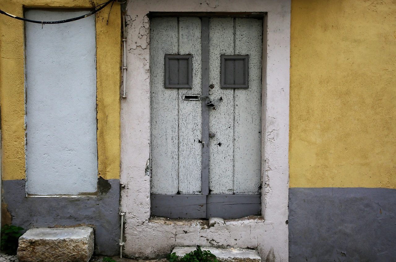 오래된 도시의 골목에는 뼈만 남아 있는 빈 집이 많습니다.