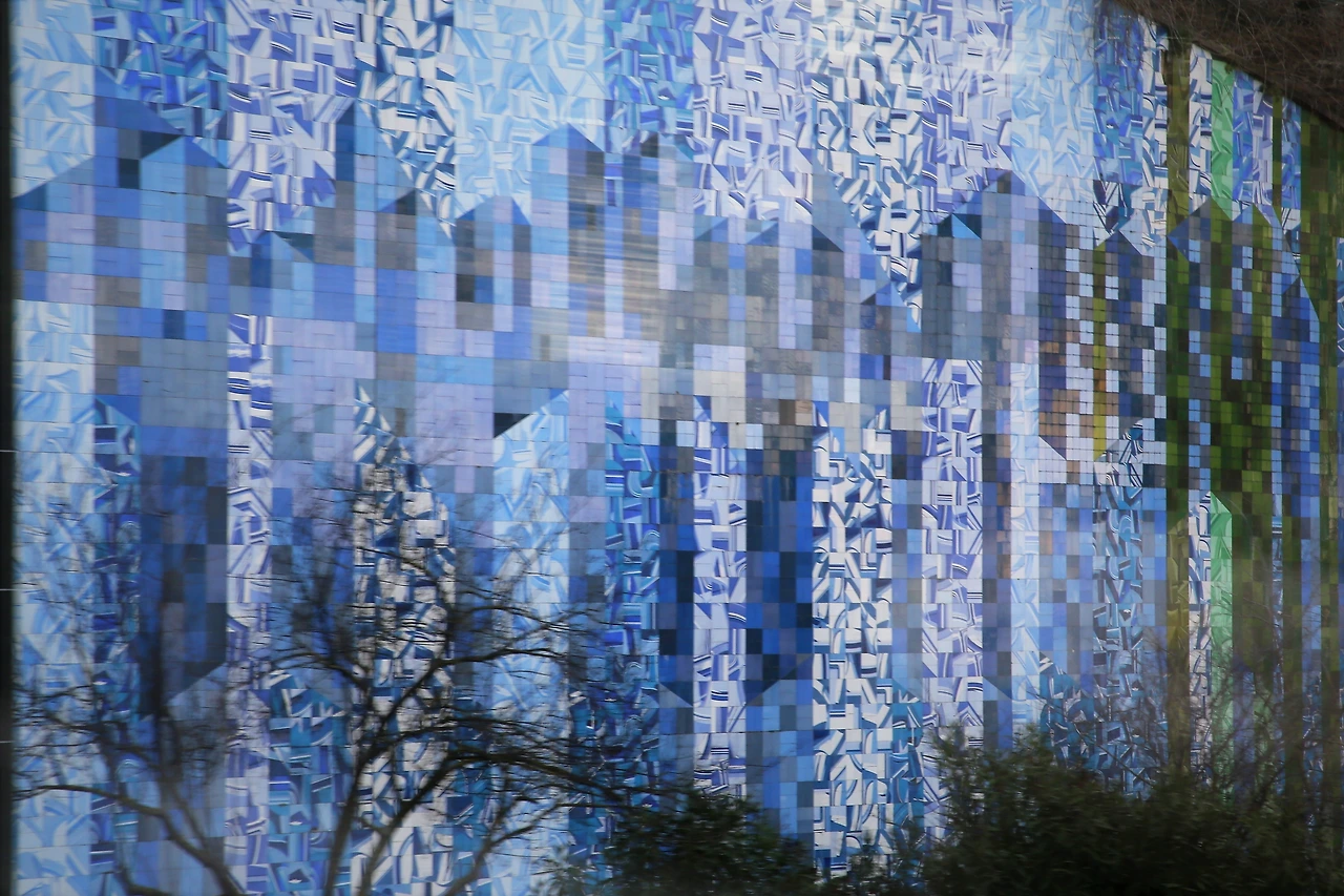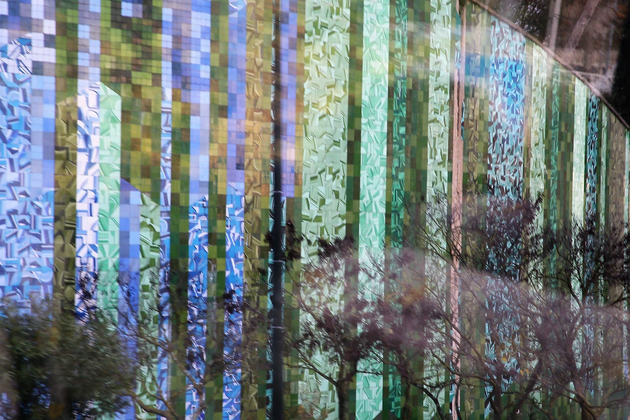 각각 다른 크기와 모양으로 멋을 낸 유리창에는 스테인드 글라스처럼 색 유리도 보입니다.