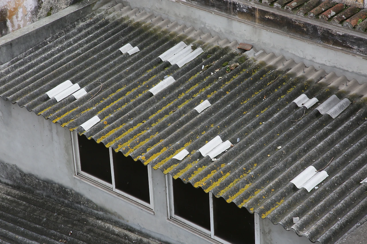 슬레이트 지붕 군데군데에 함석을 덧대어 기웠습니다.