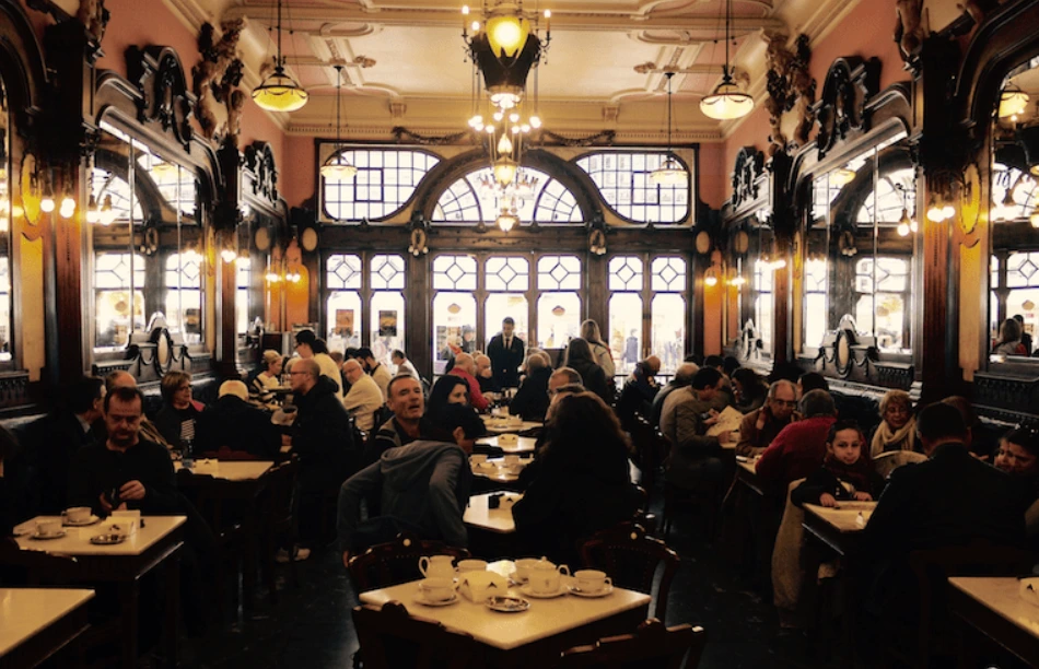 고풍스러운 아르누보 양식의 이 카페는 해리 포터 중 호그와트 계단의 모티프가 되었다는 렐루 서점과 함께 포르투의 명소입니다. 그 카페가 숙소에서 멀지 않은 곳에 있었습니다.