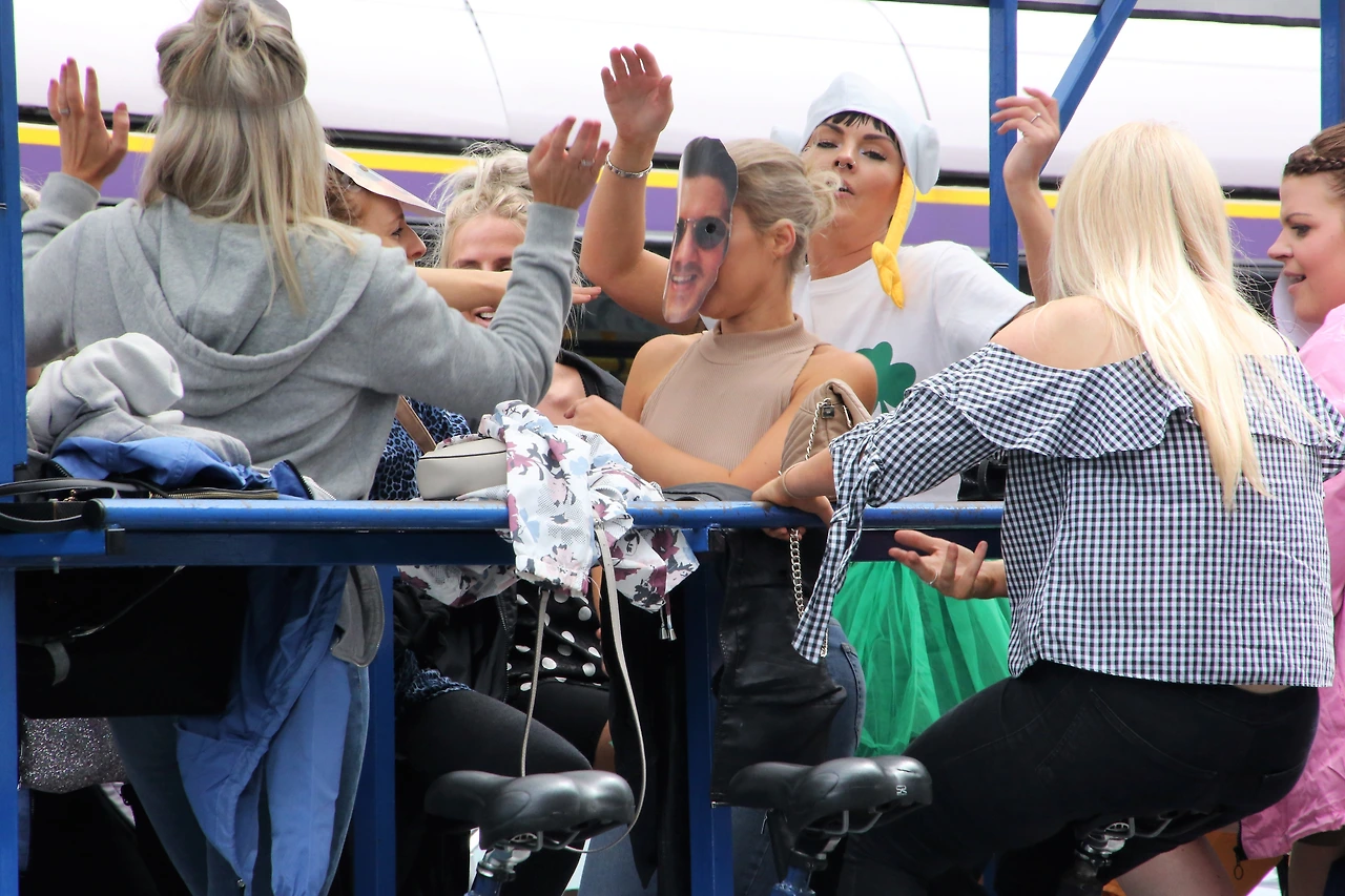 사람들은 도깨비 뿔 모양의 바이킹 모자를 쓰고 있는데 모두들 흥분되고 즐거운 표정이다.