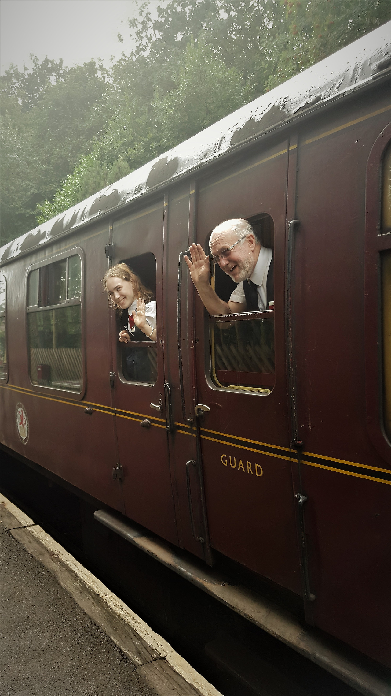 기차에 탄 사람도 지나가던 사람들도 서로 손을 흔들며 미소를 짓습니다.