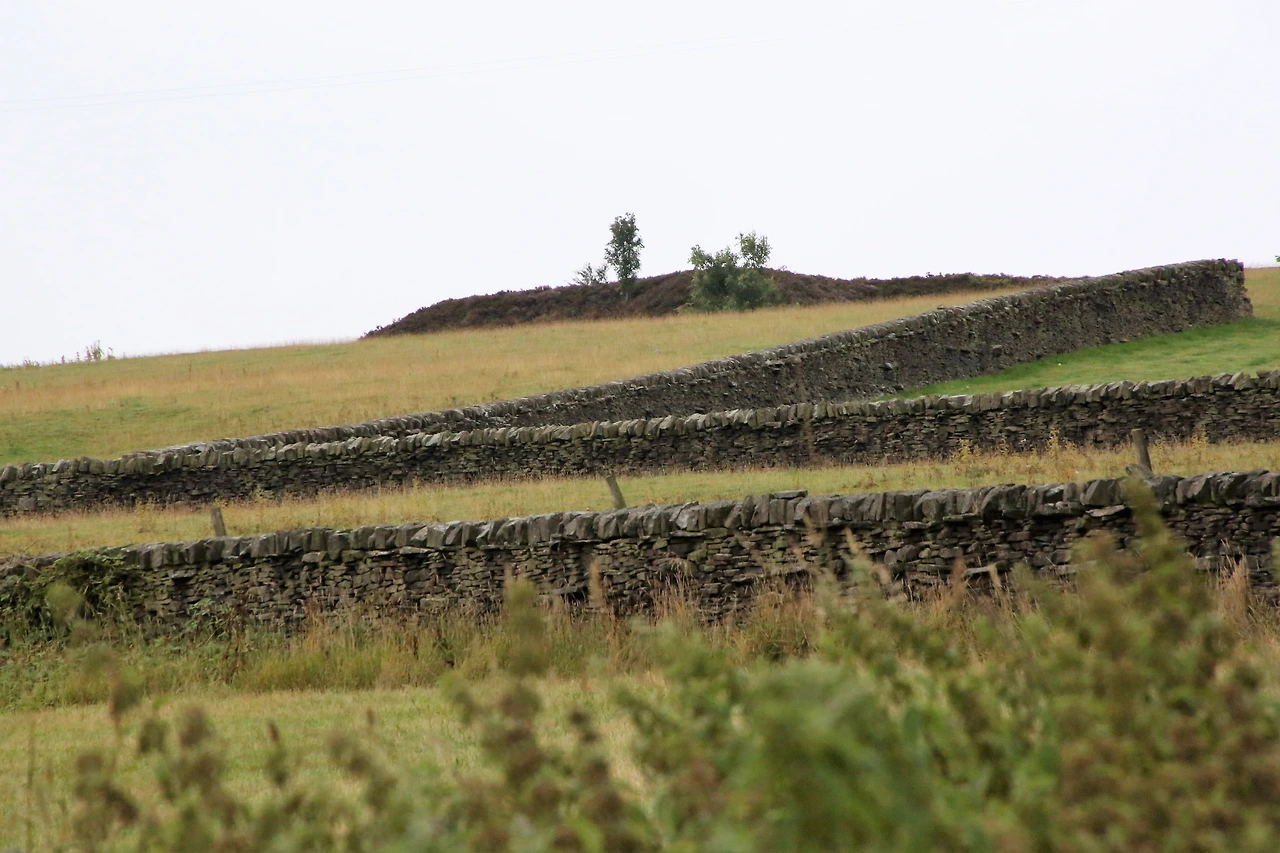 영국식 돌담이 둘러쳐진 들판을 넘으면 히스가 무성한 황야가 펼쳐집니다.