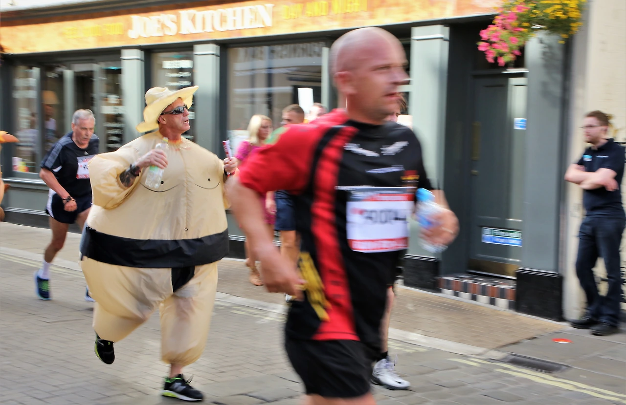 달리기를 하는 사람들 중 특이한 차림들이 간간히 보였습니다.