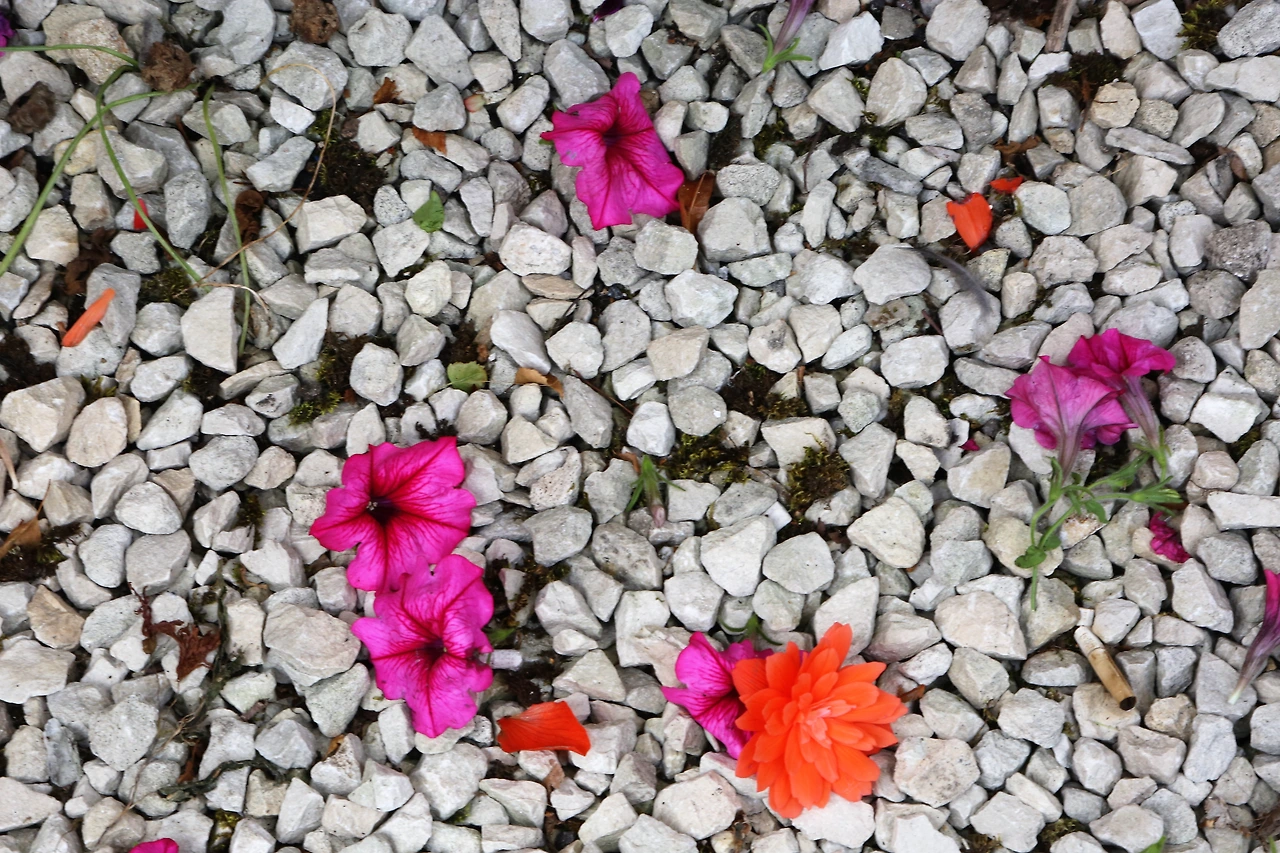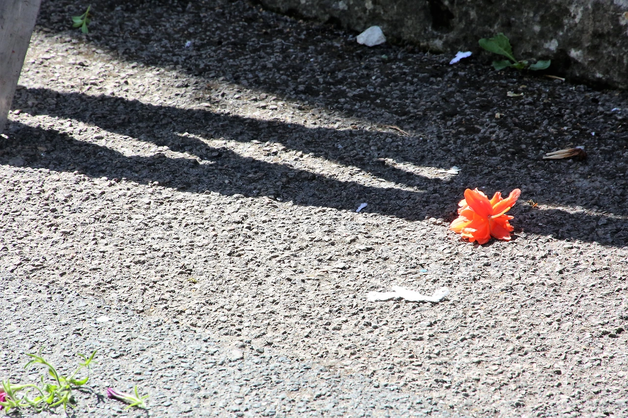 초록의 잔디에는 설치미술처럼 꽃잎들이 떨어져 있지요.