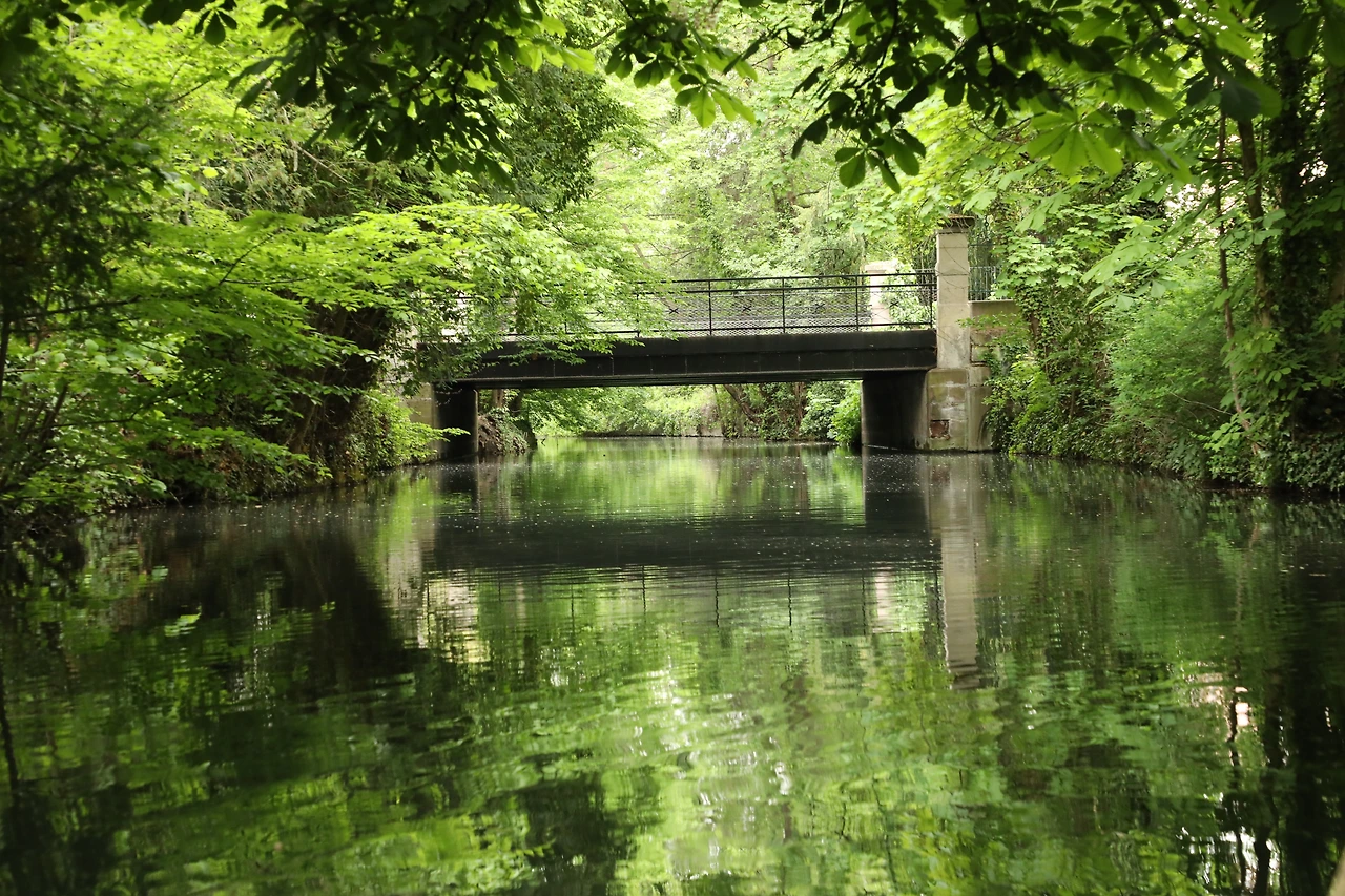 작은 운하의 보트는 멈춰 있었고 힘없는 햇살이 드문드문 낡은 벽과 빈 나뭇가지를 비추고 있었다.