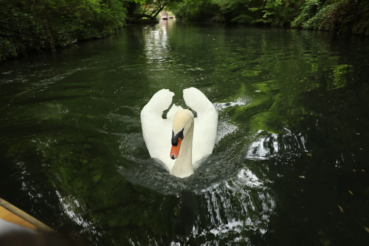 무서울 정도로 보트를 졸졸 따라다니던 백조
