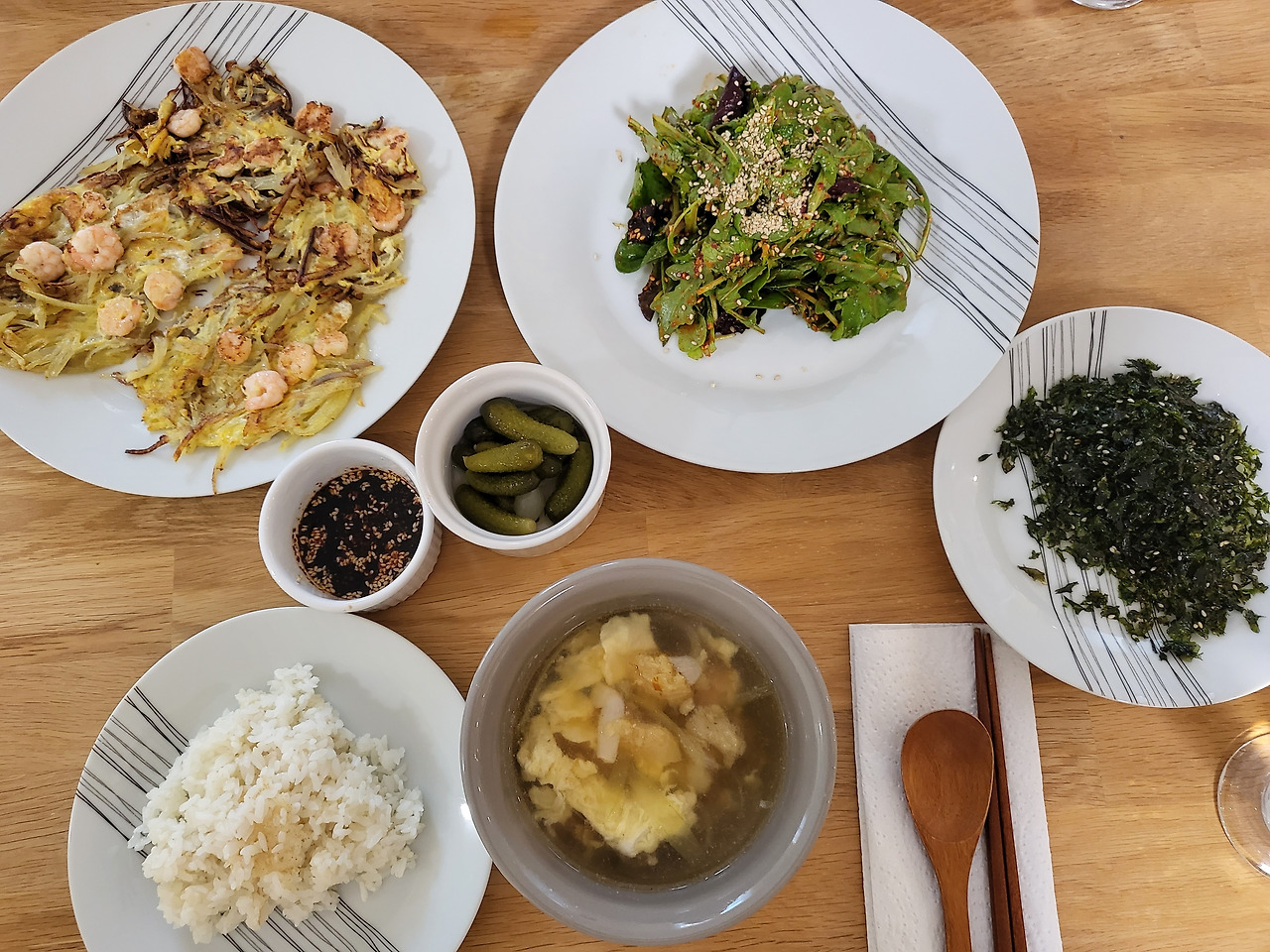 누룽지 백숙에서 양갈비 구이, 배추전, 어린잎채소 비빔밥, 김밥도 뚝딱이다.