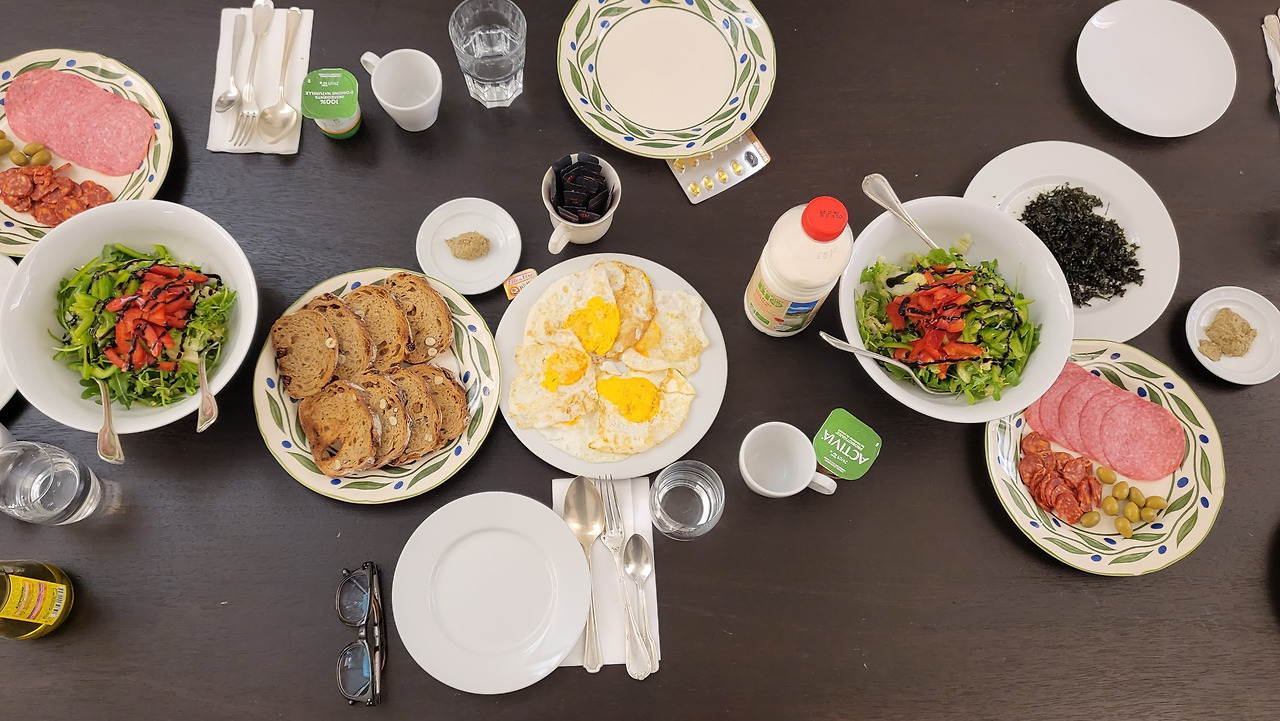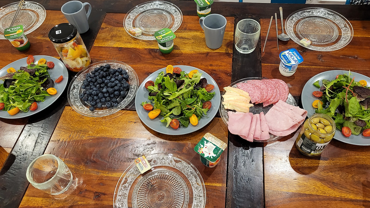 치즈, 버터, 올리브, 달걀, 과일, 요구르트, 잼, 햄, 소시지, 새우, 감자 양파, 마늘 등 기본 요리 재료를 구입한다.