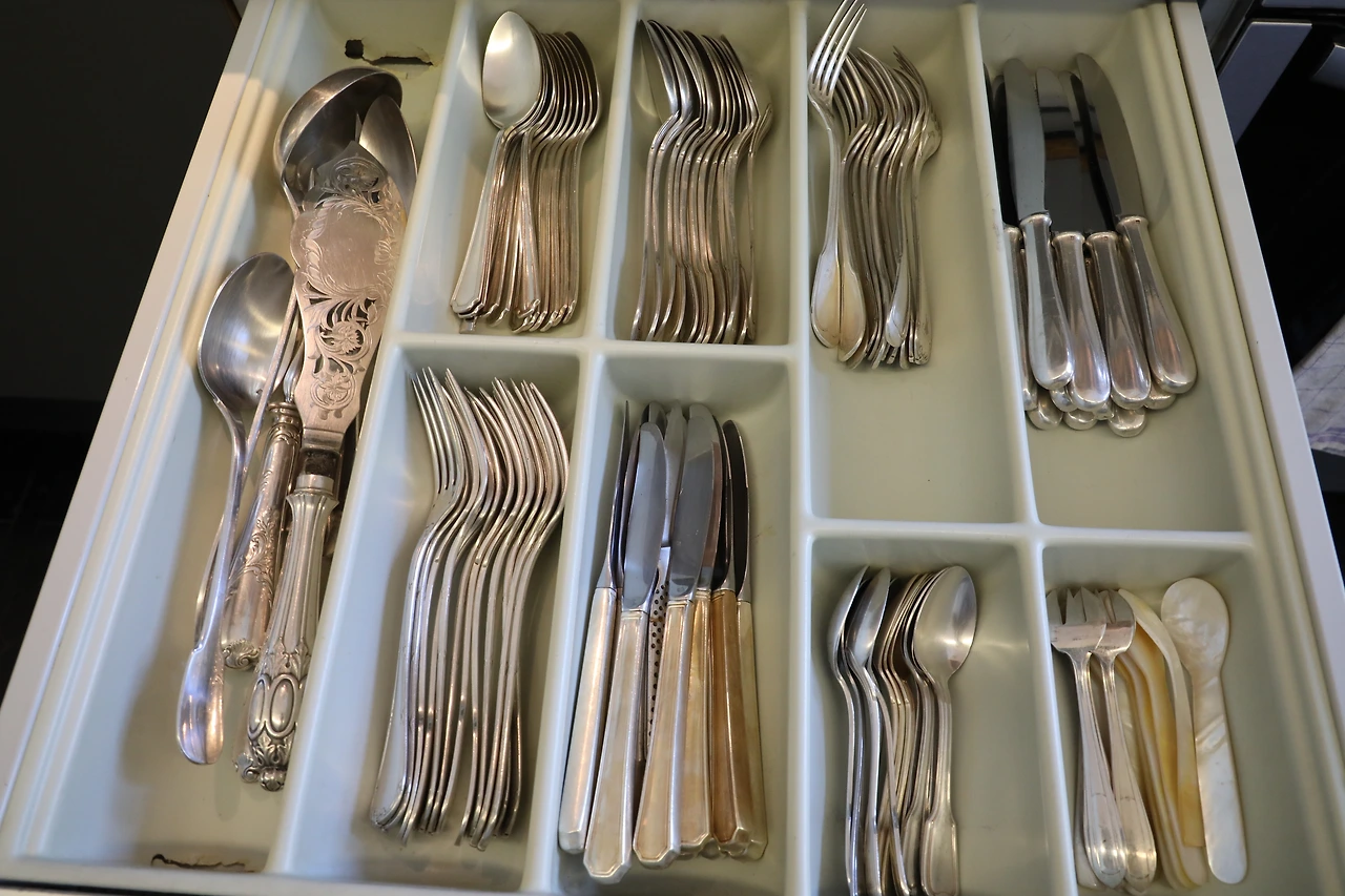 샴페인, 와인, 코냑 등 다양한 주종을 따를 수 있는 글라스들, 게다가 커트러리는 모두 실버였다.