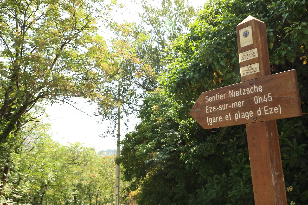 니체의 산책길 이정표(역에서 해변까지 45분)