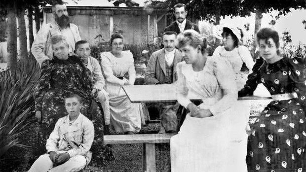 모네와 알리스의 가족들(왼쪽 뒤 첫 번째 남자가 모네, 그 앞의 여인이 알리스)