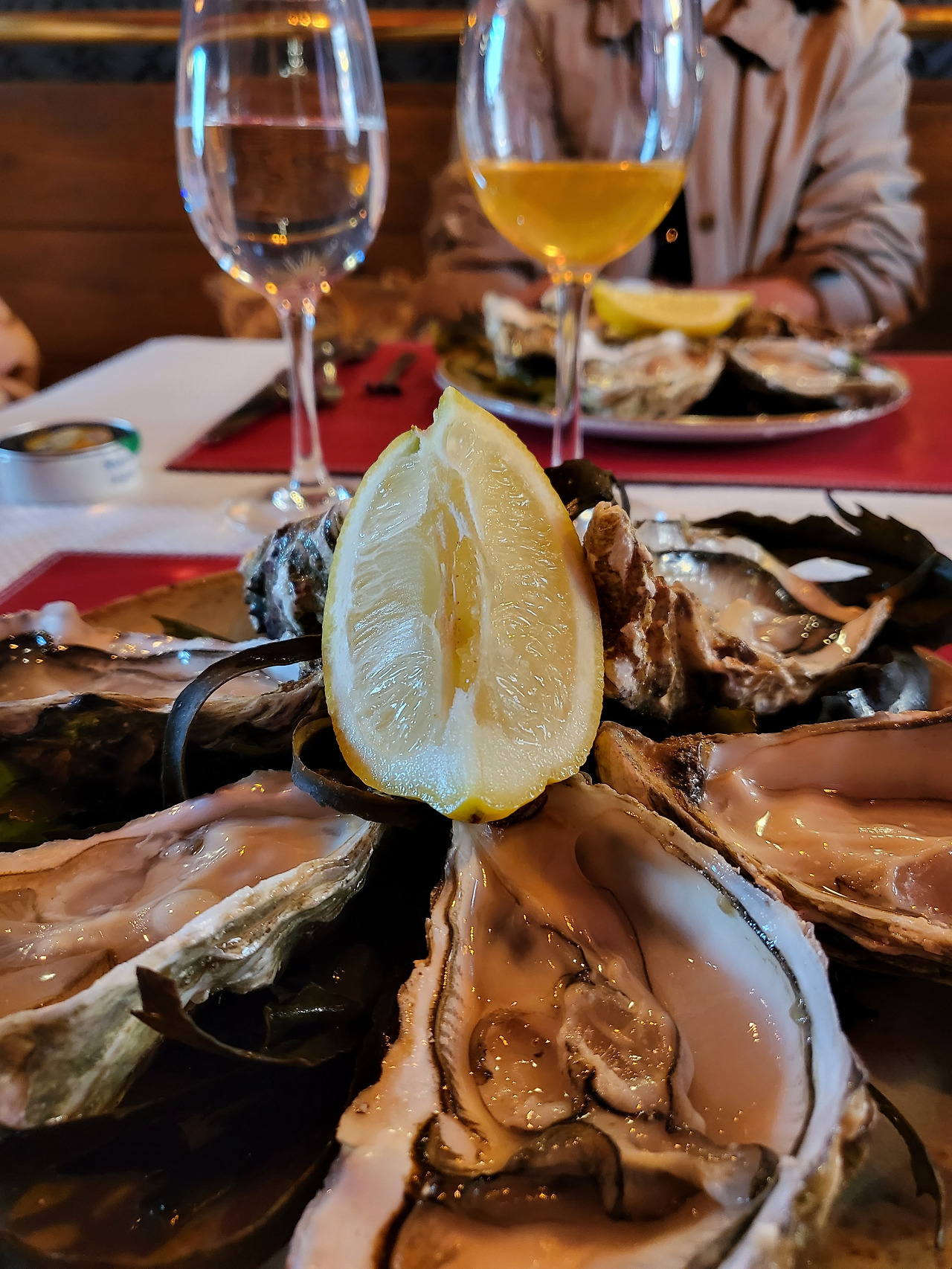 큼지막한 굴 위에 레몬 즙을 짜서 한 입 호로록 먹었는데 비릿함 하나 없이 시원하고 고소했습니다.