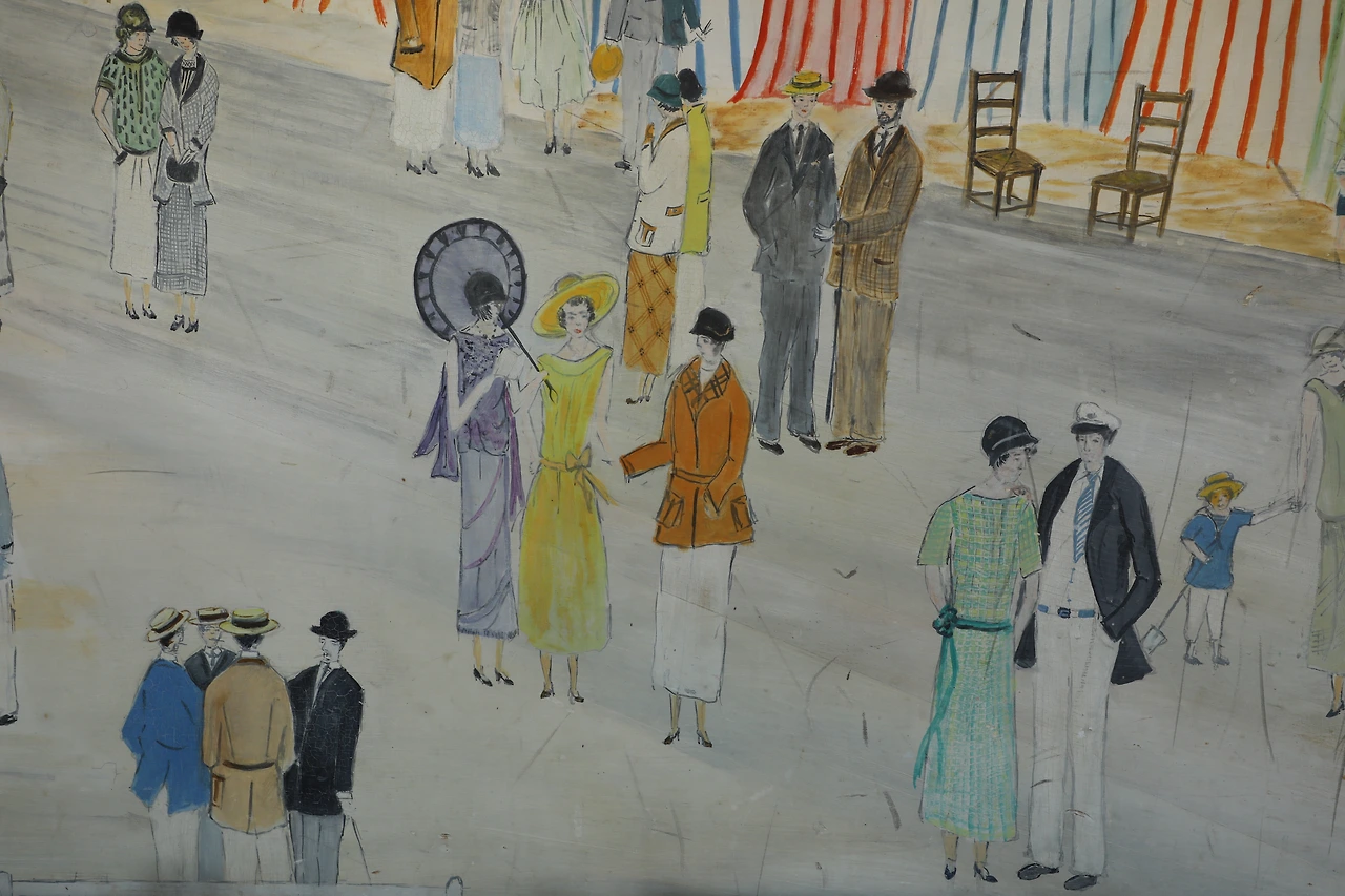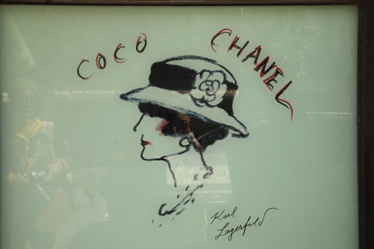 칼 라커필드가 그린 코코 샤넬 캐리커처(1913년 샤넬이 도빌에 첫 오픈했던 건물에 부착되어 있다)