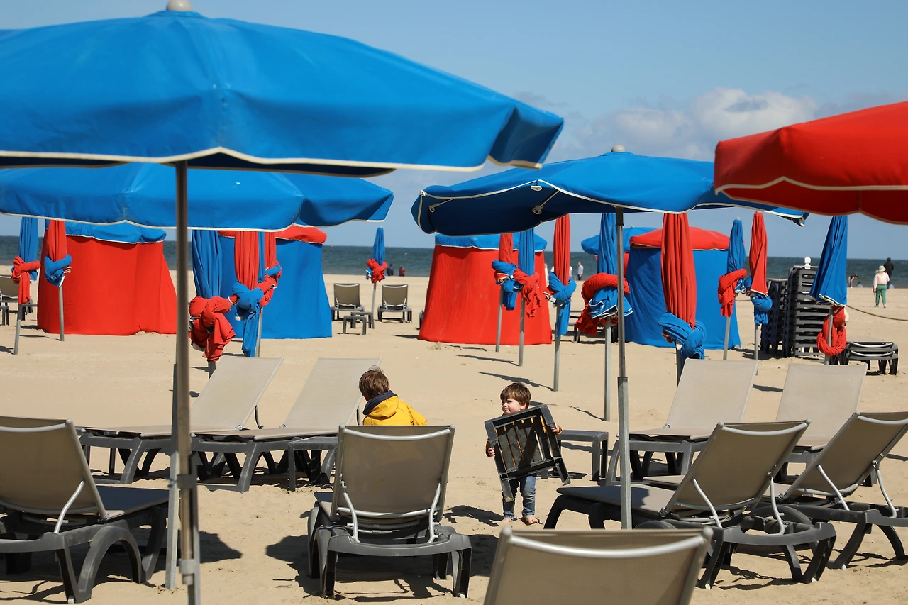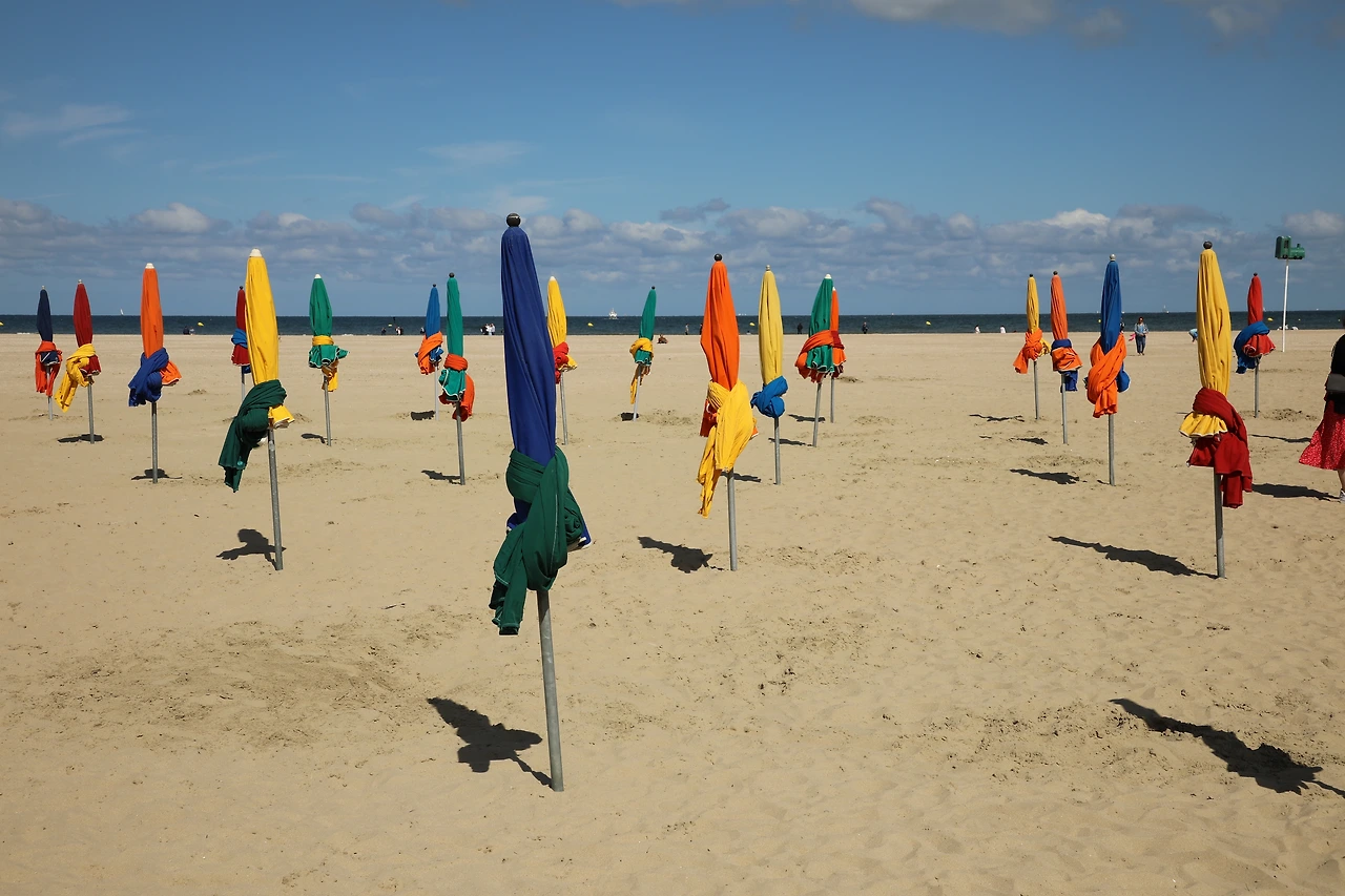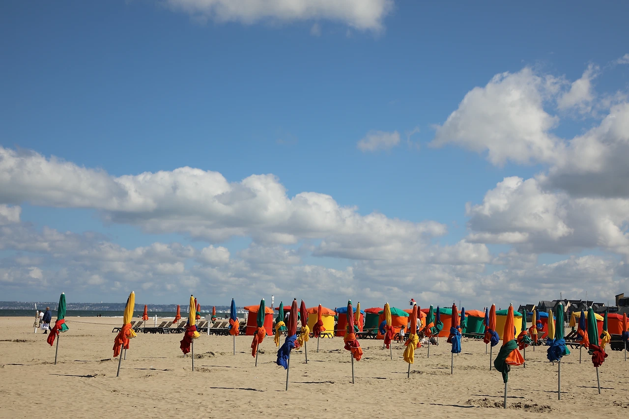 도빌 해변은 몽돌로 이루어진 에트르타나 니스 해변과는 달리 고운 백사장이 깔려있는데 무려 2km나 지속됩니다.