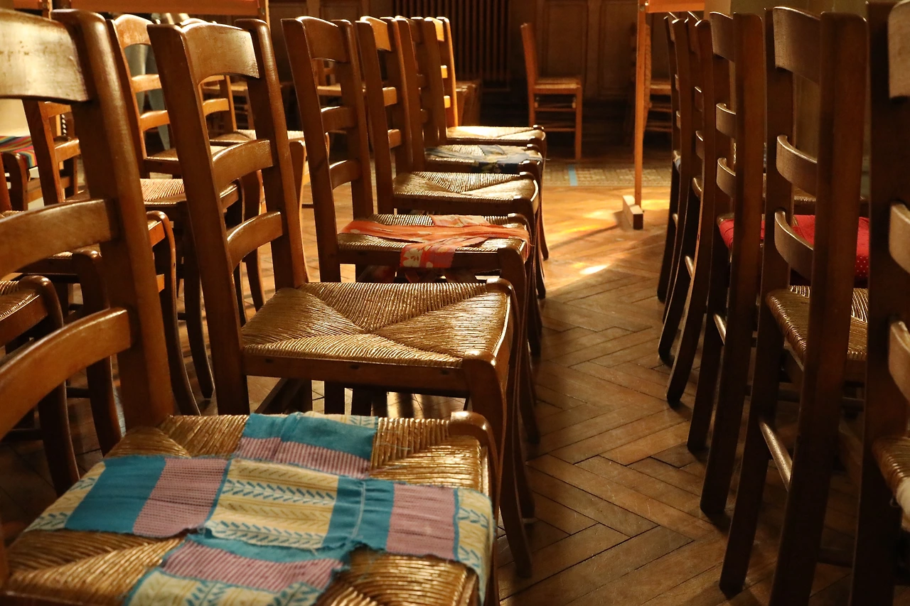그런 모습은 처음이라 의아했는데 한 개 건너 둘러져 있는 것이 아마도 코로나 때문에 신자들이 떨어져 앉도록 표시를 한 것이 아닌가 싶더군요.