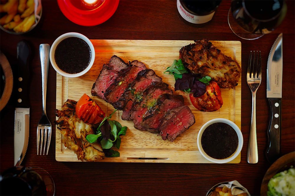 소고기 안심에서도 가장 부드러운 정중앙 부위를 두툼하고 넓적하게 썰어 굽는데, 육즙이 새지 않도록 겉은 빠르게 바삭 굽고 속은 부드러운 식감을 유지하도록 덜 익혀 먹습니다.