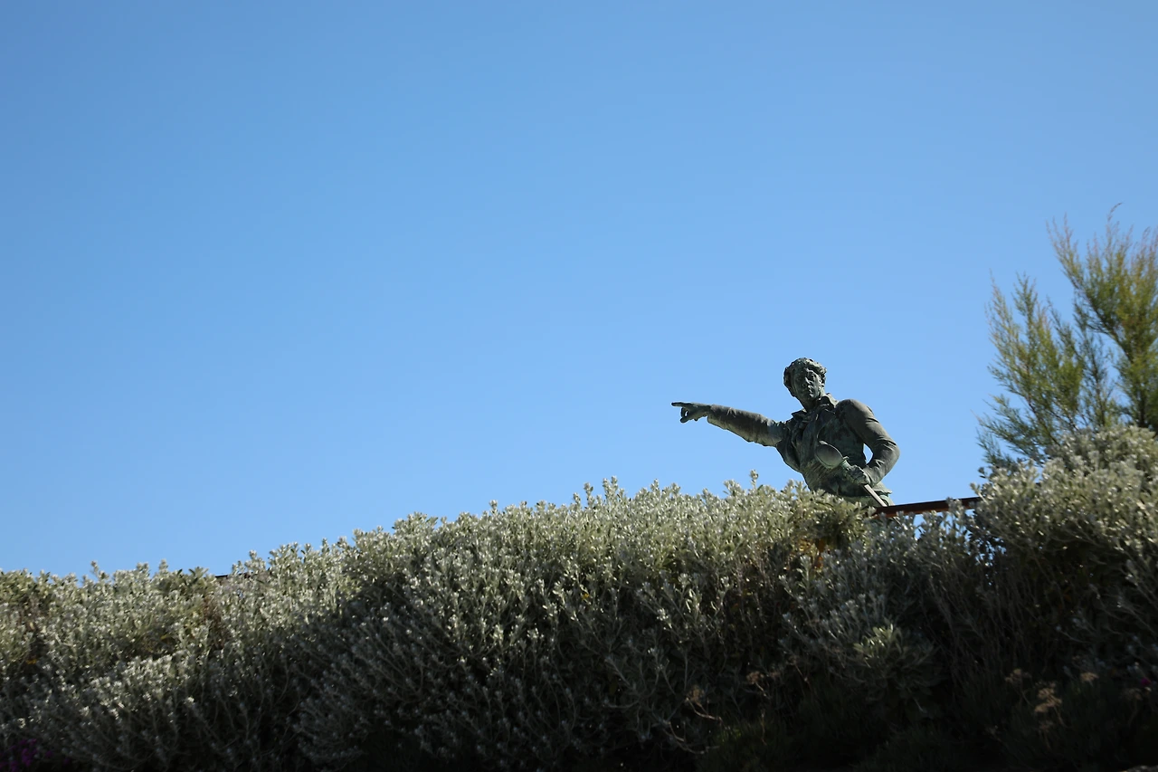 요새를 막기 위해 쓰였던 대포 옆에는 위풍당당한 남자의 동상이 있습니다.