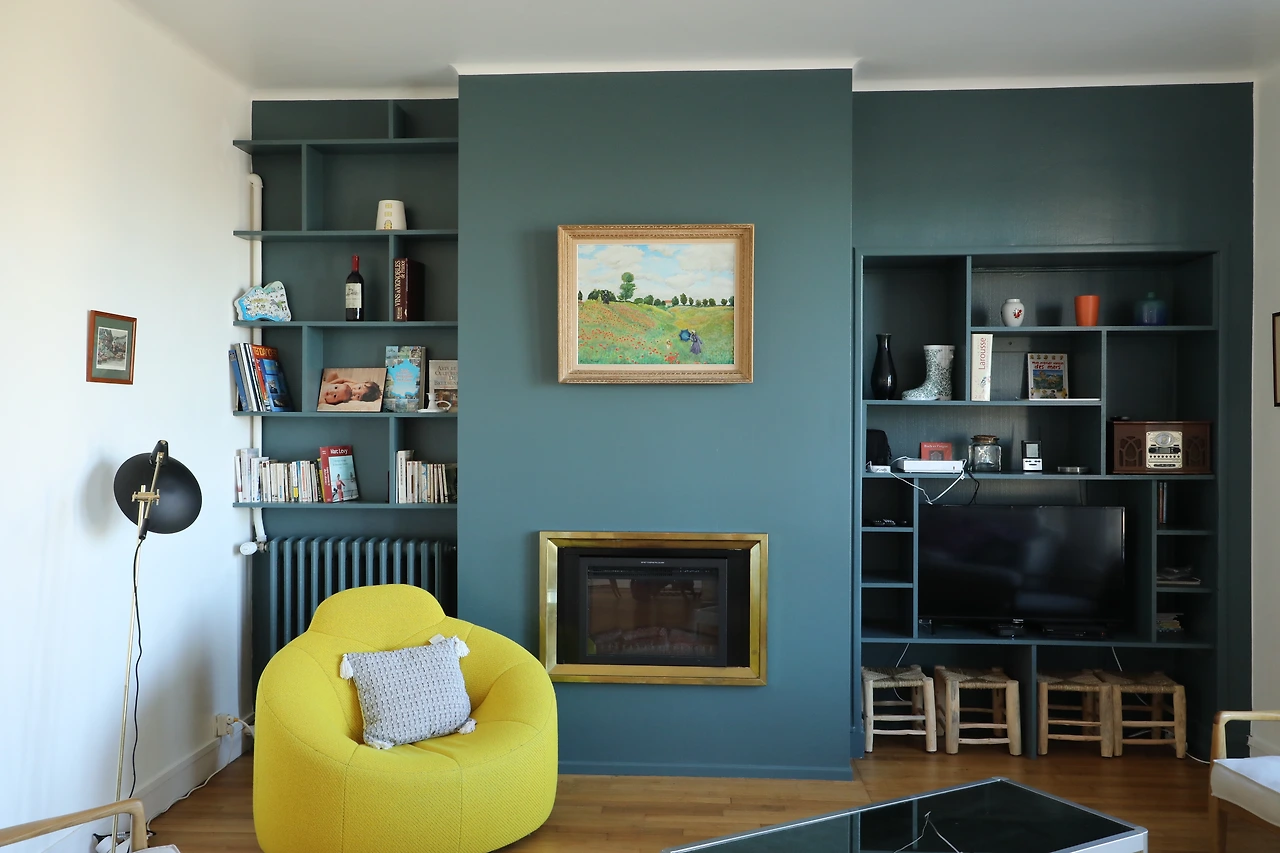 초록색으로 칠해진 거실 벽면에는 모네의 그림 <개양귀비> 모사품이 걸려 있는데 싸구려 티가 너무 많이 나서 눈살이 찌푸려졌습니다.
