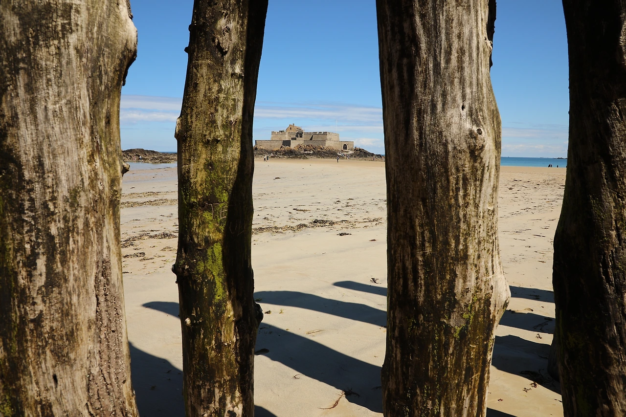 생 말로 해변에는 독특한 풍경이 있습니다.