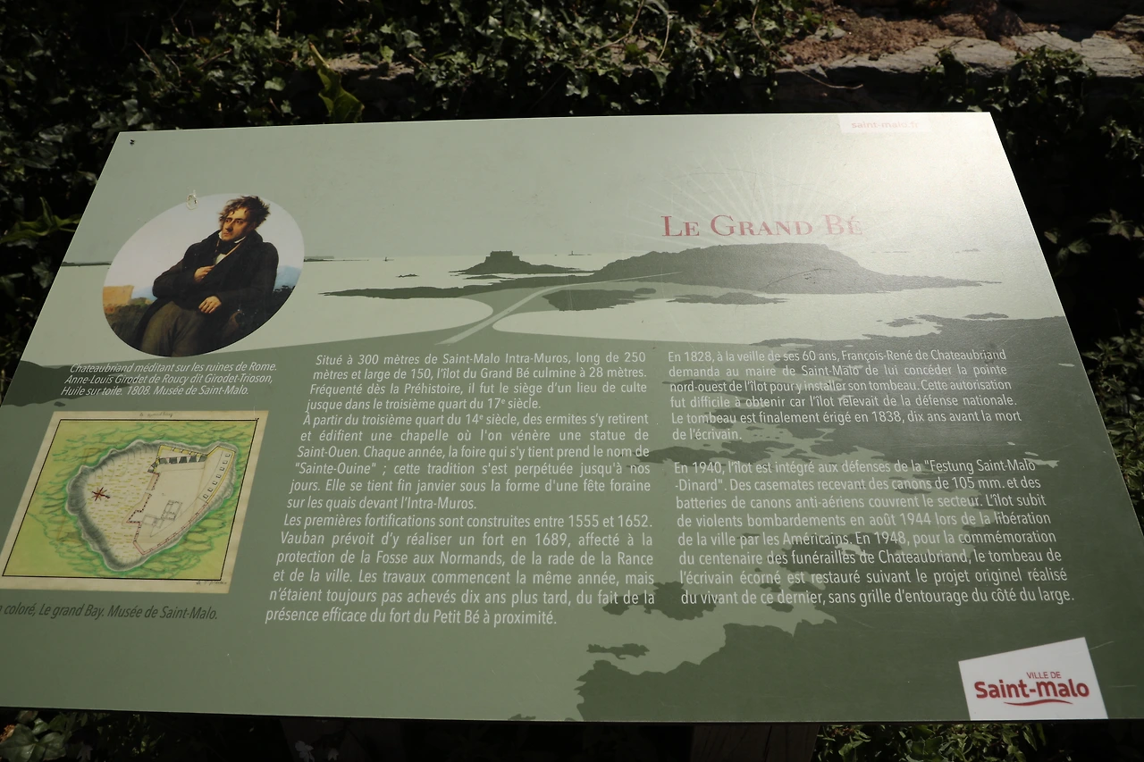그랑 베의 위치와 면적에 대한 설명(좌), 샤토브리앙의 무덤이 만들어진 배경 설명(우)