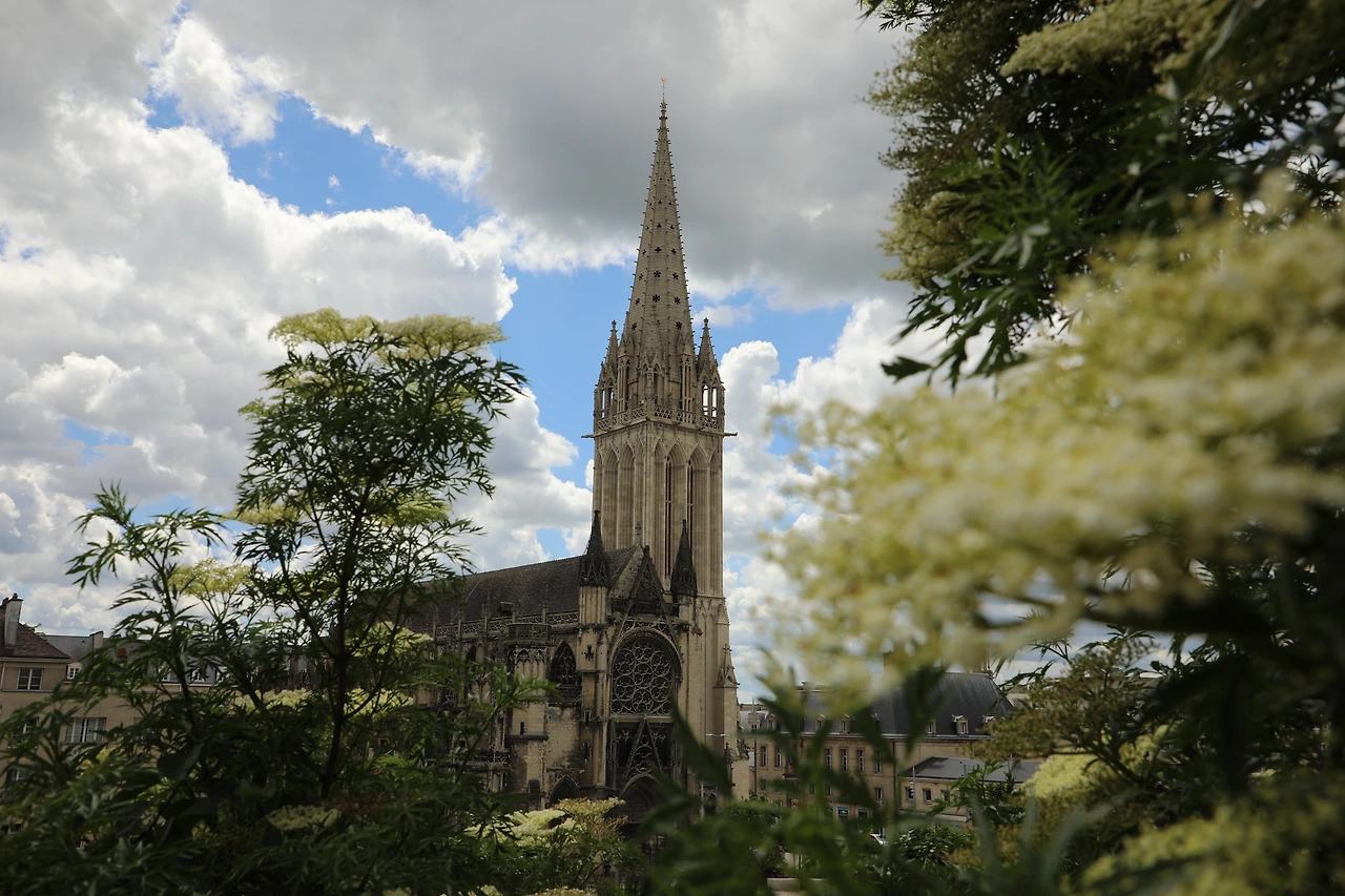 수도원은 1063년 노르망디에서 가장 중요한 로마네스크 건물 중 하나인데 노르망디 상륙작전 당시 캉의 주민들은 교회로 피신했고, 옥상에는 (폭격을 피하기 위해) 병원이라는 것을 보여주기 위해 시트를 십자가 모양으로 만들고 핏물에 적신 붉은 십자가를 걸어두었었다고 하네요.