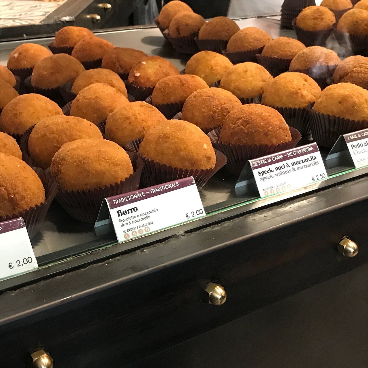 라구소스와 모차렐라, 완두콩과 밥과 섞은 후에 빵가루를 입혀 튀긴 이탈리아 요리로 안에 넣는 재료에 따라 다양한 맛을 즐길 수 있다.
