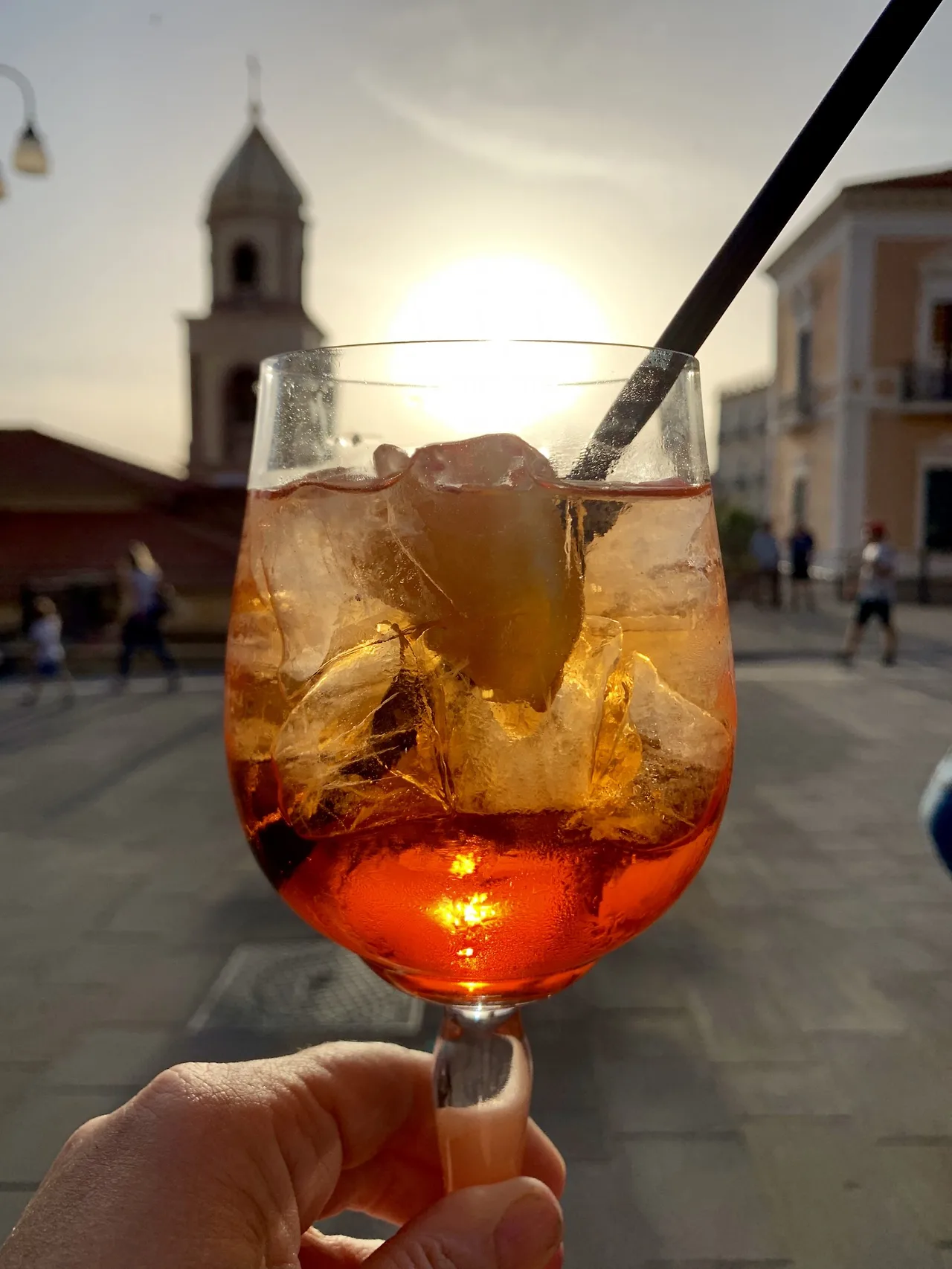 그것은 시칠리아뿐만 아니라 이탈리아 사람들이 즐기는 아페롤 스프리츠라는 식전주이다.