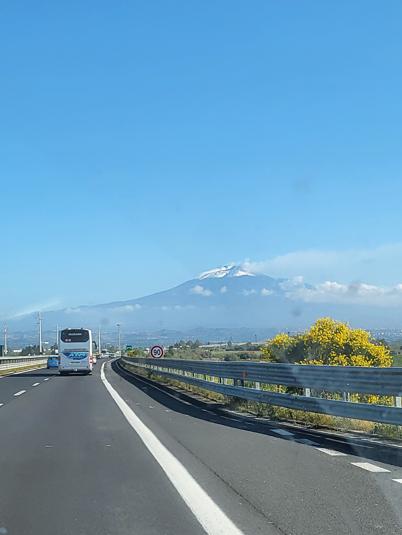 카타니아에서 타오르미나로 가는 길에 에트나 산이 보이기 시작했다.