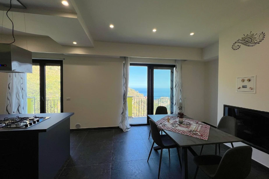 널찍한 거실과 주방에는 아일랜드 식탁이 있고 방 세 개와 거실은 모두 바다 뷰이다.