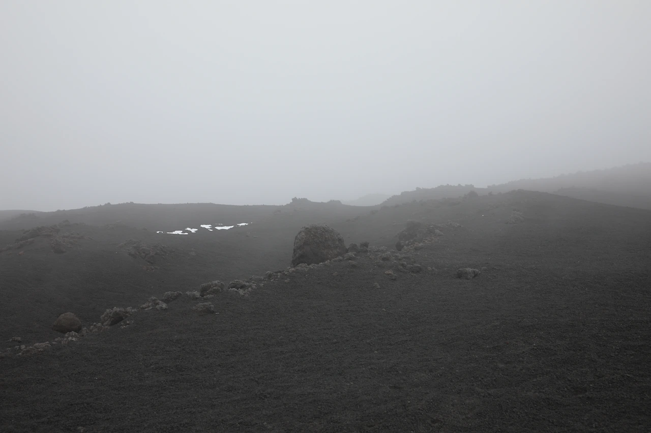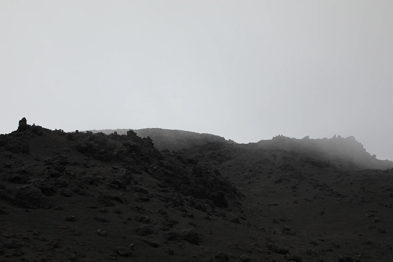 검은 화산재와 현무암으로 뒤덮인 에트나 산