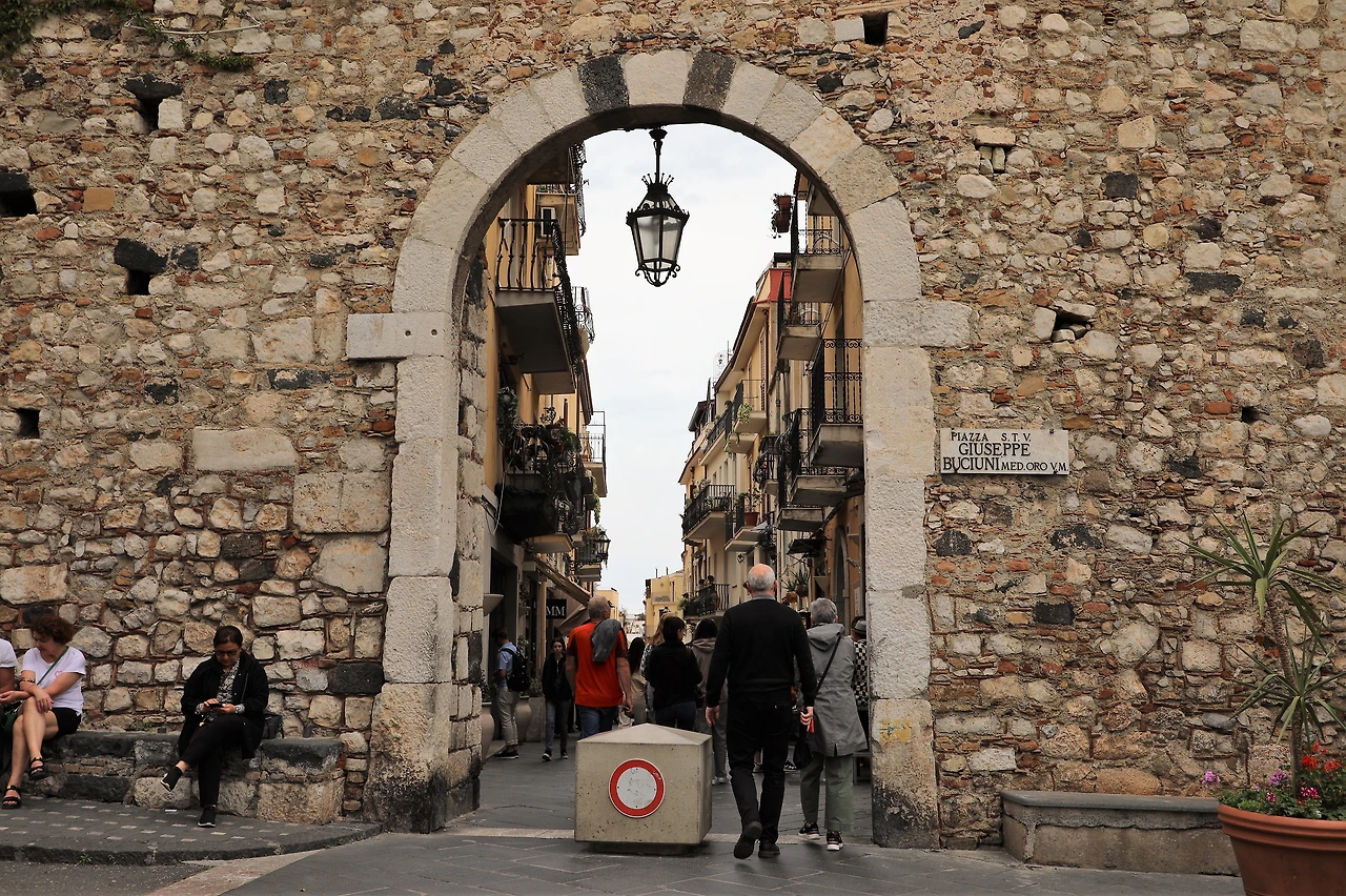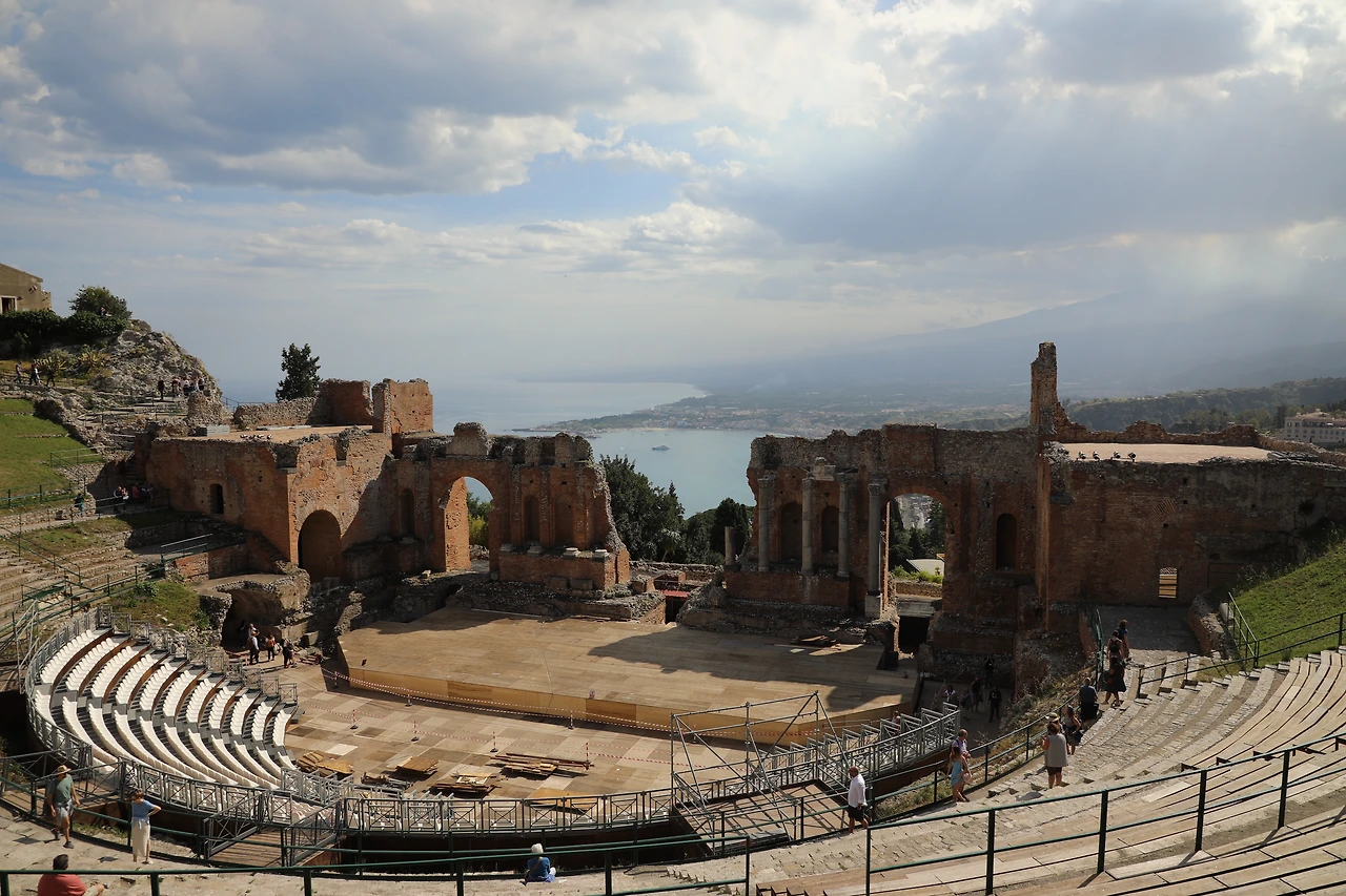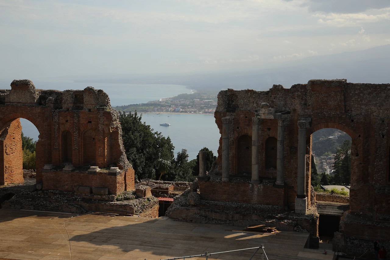 하지만 오히려 무너진 틈으로 이오니아 바다와 에트나 산이 절묘하게 보이게 되어 최고의 전망을 자랑한다는 그곳에 가야 한다.