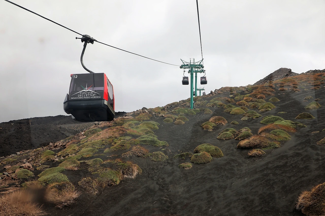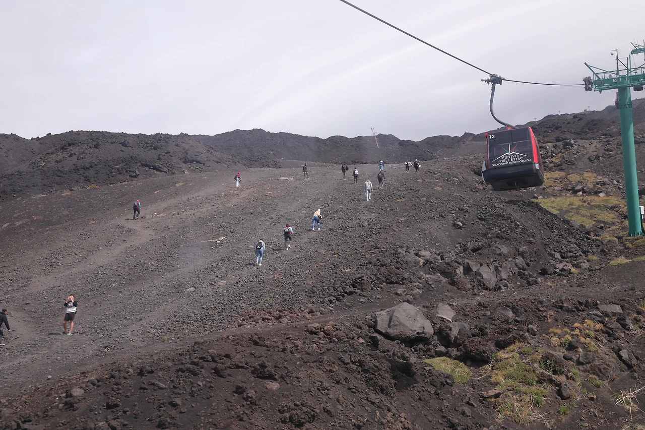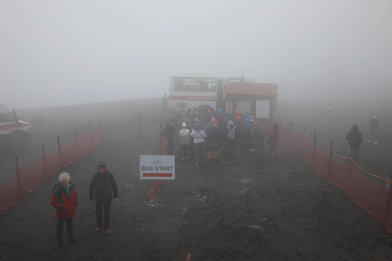 에트나 케이블카에서 내려 셔틀버스를 타고 올라간다.