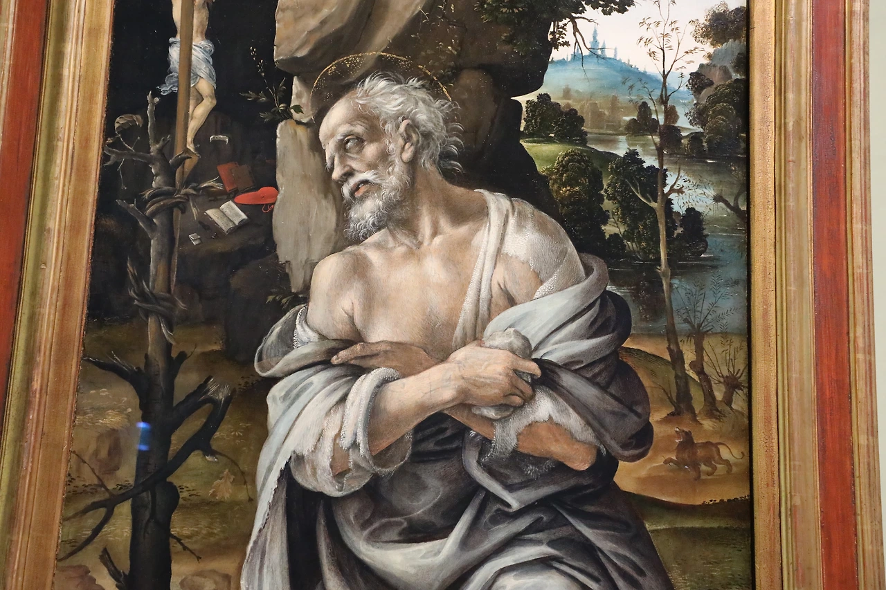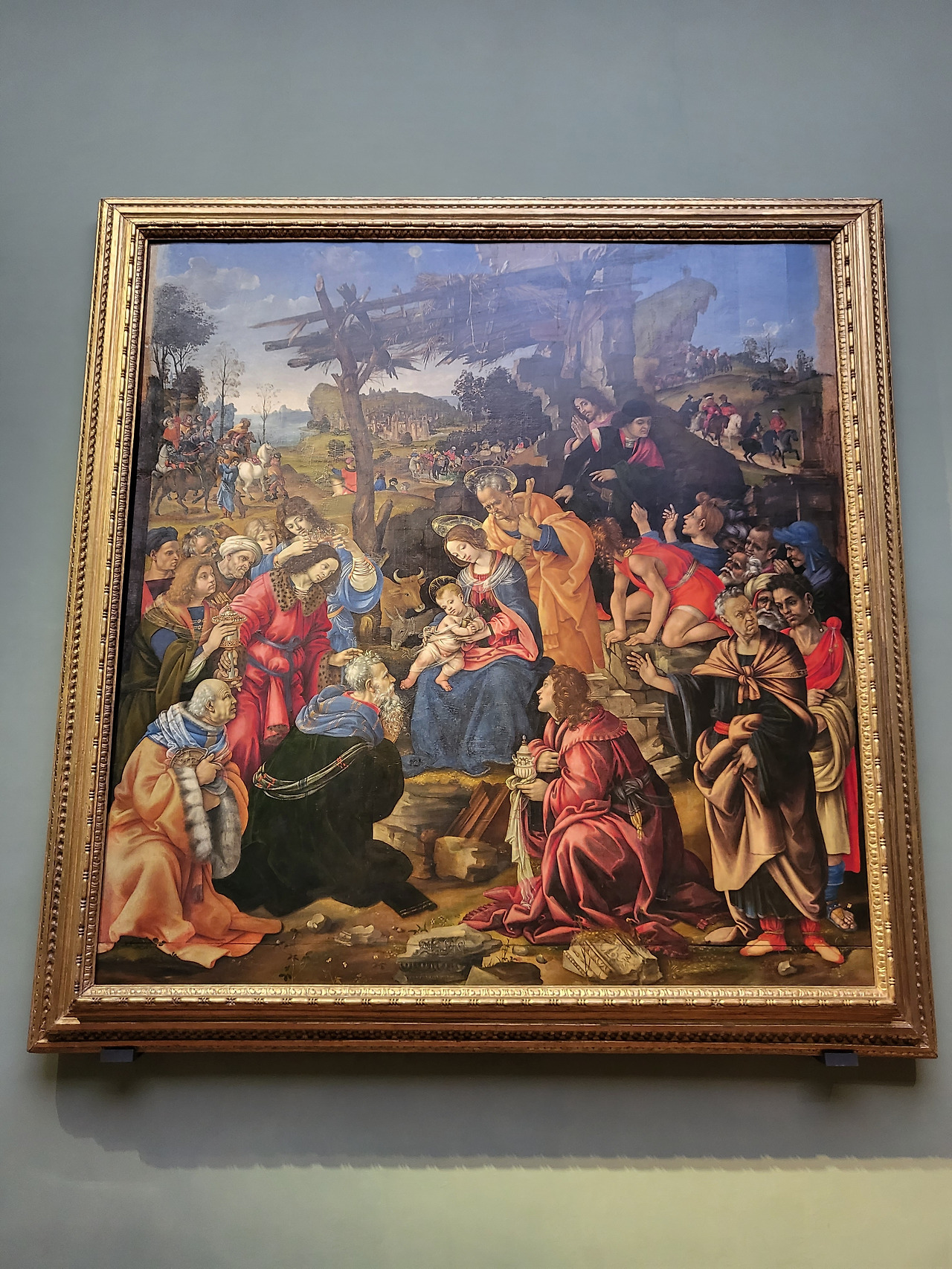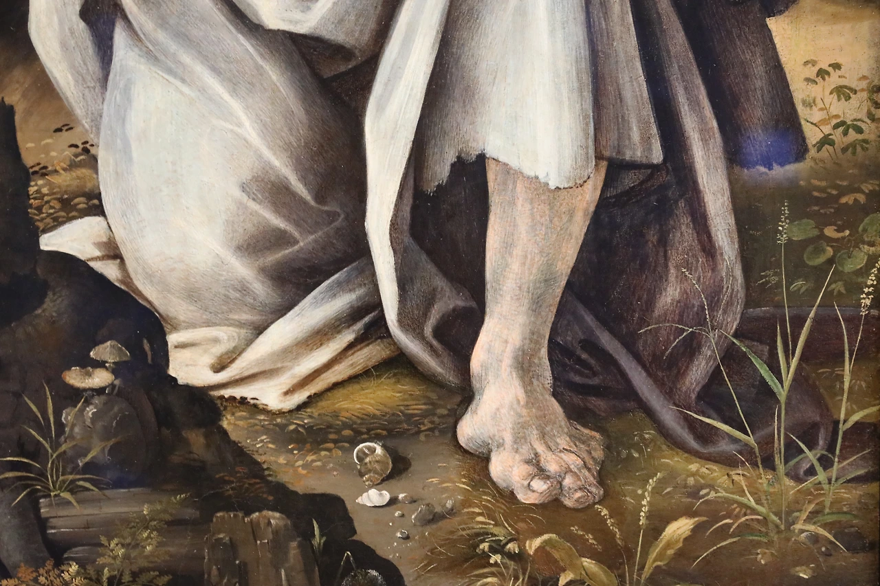 레오나르도 다빈치는 1452년에 태어났는데 이 그림이 그려진 것은 1472년, 즉 그가 스무 살 때 그렸다는 거다.