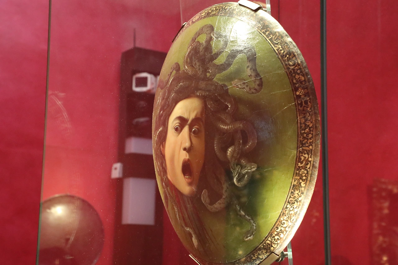 메디치 가의 로마 대리인이었던 프란체스코 마리아 델 몬테 추기경이 의식용 방패로 <메두사의 머리>를 주문했다.