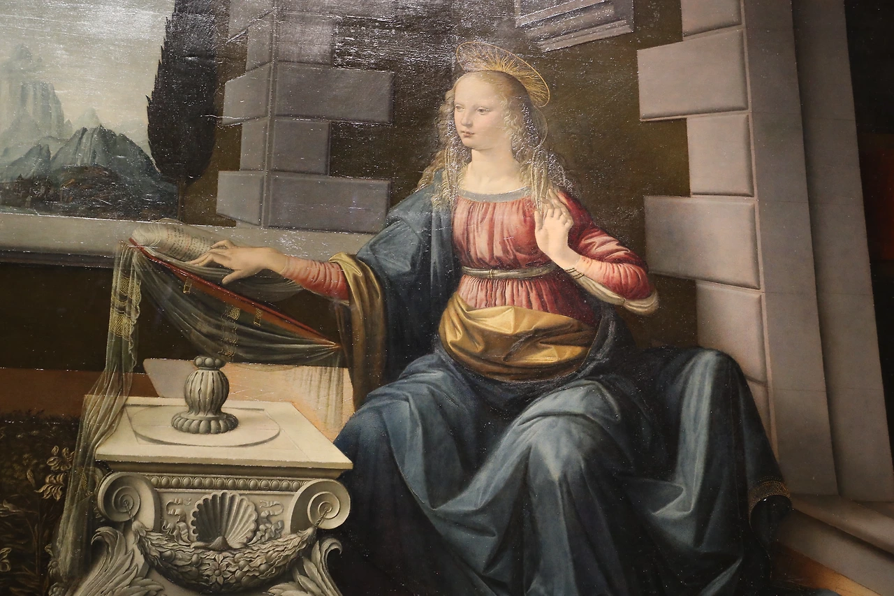 그런데 레오나르도 다빈치의 수태고지 속의 마리아는 너무도 당당하고 편안한 표정을 하고 있다.