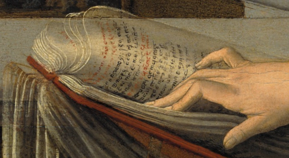 마리아가 짚고 있는 성경 문구의 디테일