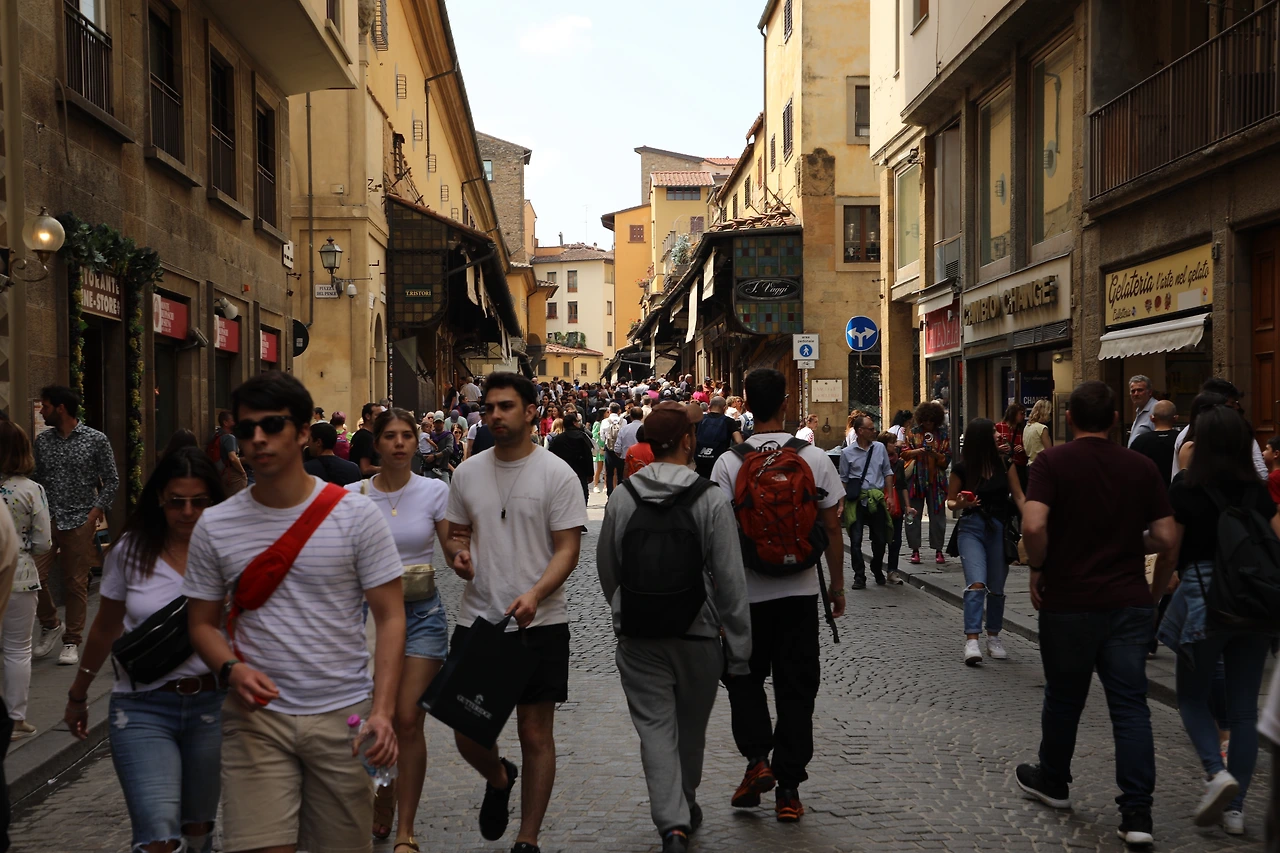 사람들이 가득 찬 베키오 다리