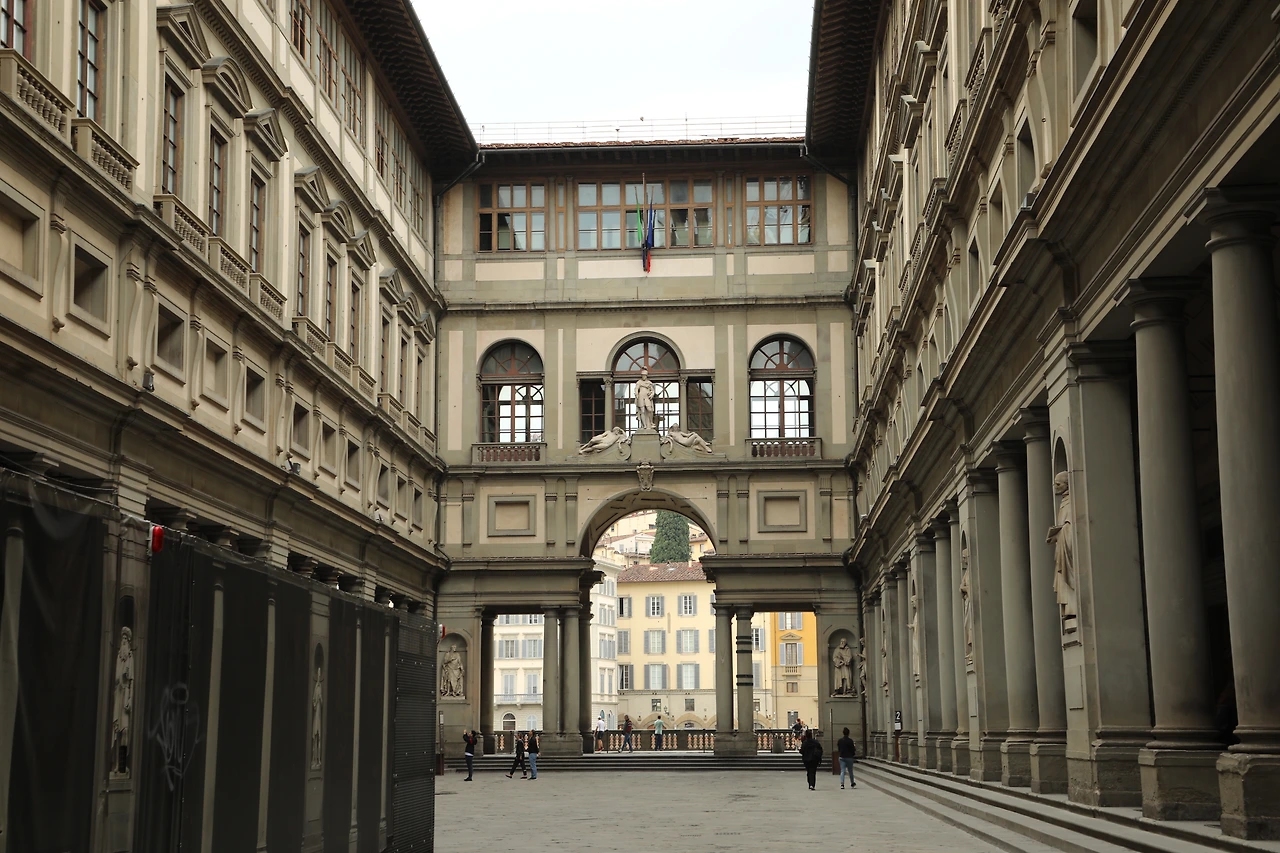 두 개의 긴 건물이 복도로 이어진 'ㄷ'자형의 우피치 미술관은 화가이며 건축가이자 뛰어난 저술가인 조르조 바사리가 설계하고 내부 장식까지 총 감독 했다.