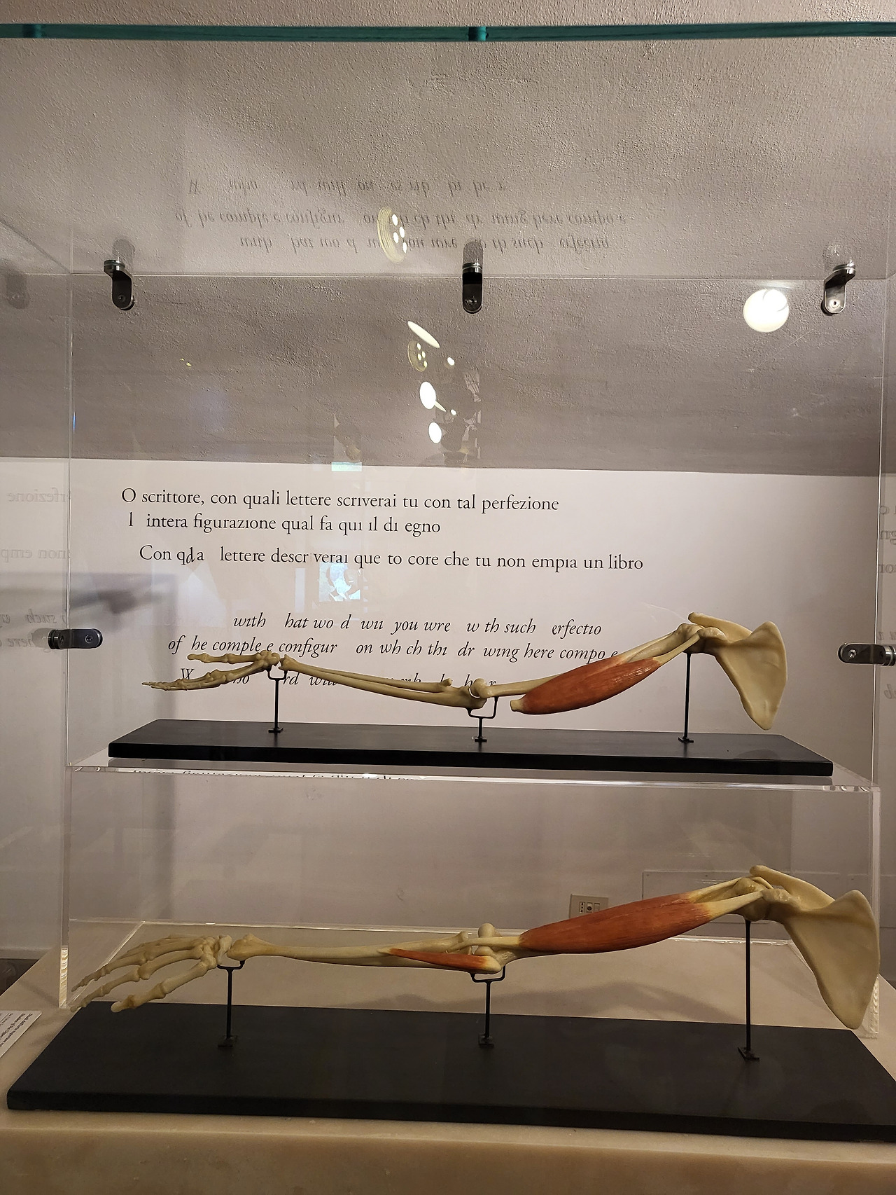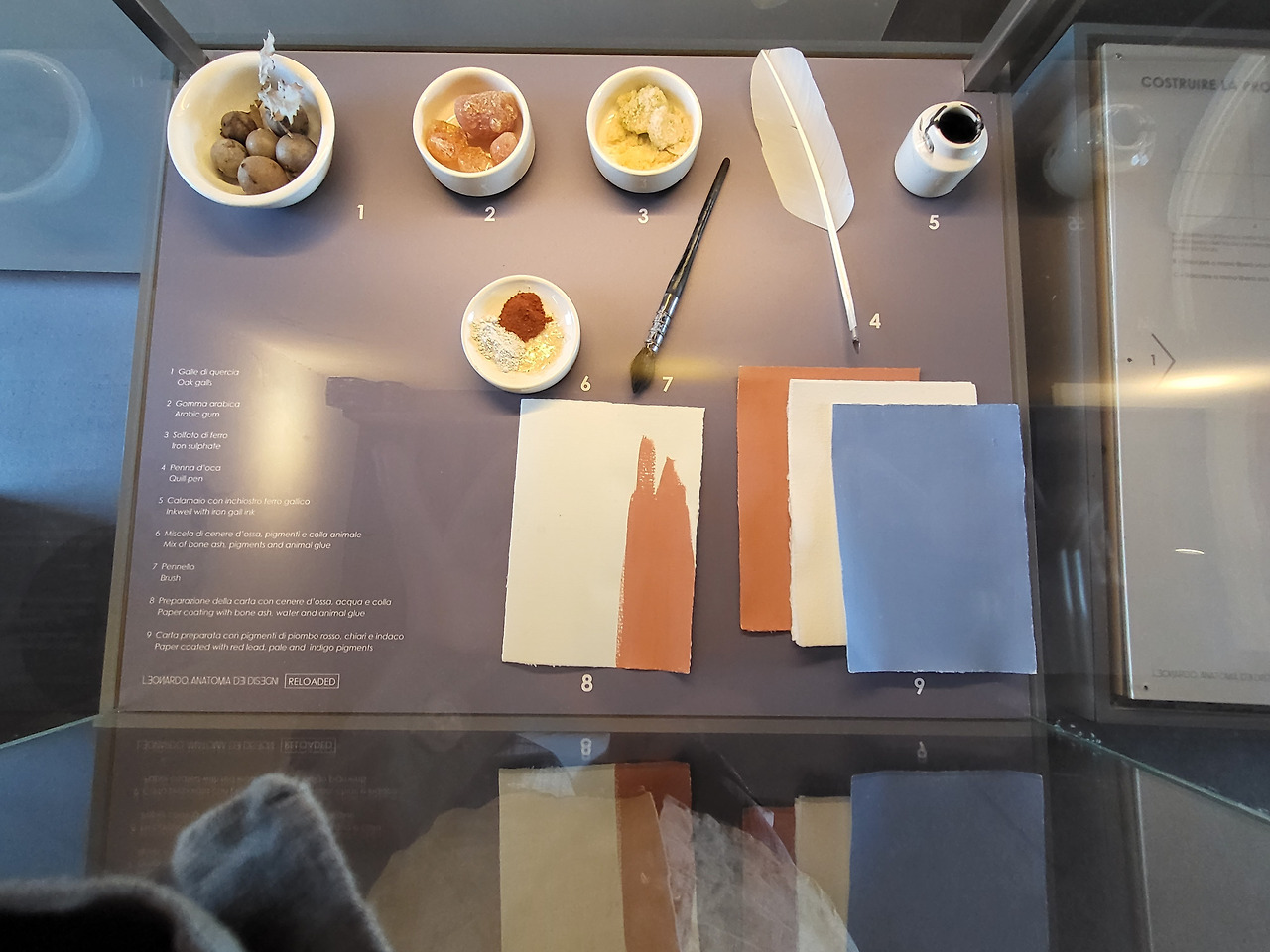 인체 해부에 사용된 방법과 사람의 근육 및 두개골에 대한 상세한 내용, 그림에 사용하는 안료를 만들기 위해 사용한 돌이나 재료들에 대한 자료들이 세세하게 진열되어 있다.
